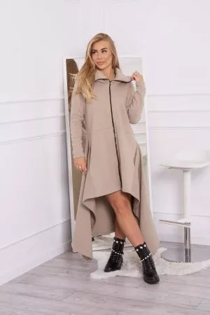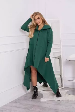 Iti prezentam o rochie la moda. Rochia are gluga, inchidere cu fermoar si laterale mai lungi. Elementul perfect pentru uz zilnic. Rochia este confectionata din material izolat de inalta calitate. Marimea este universala si va fi potrivita pentru doamnele care poarta marimile S, M sau L.