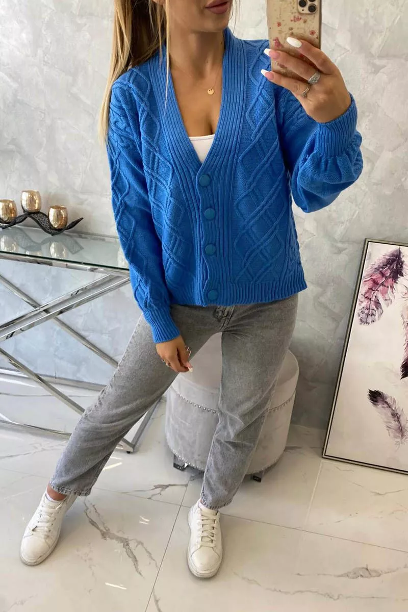 Iti prezentam un pulover la moda. Puloverul are tesatura decorativa si inchidere cu nasturi mari. Foarte stilat, pentru fiecare dintre doamne. Puloverul este confectionat din material de inalta calitate. Marimea este universala si va fi potrivita pentru doamnele in marimile M, L, XL.