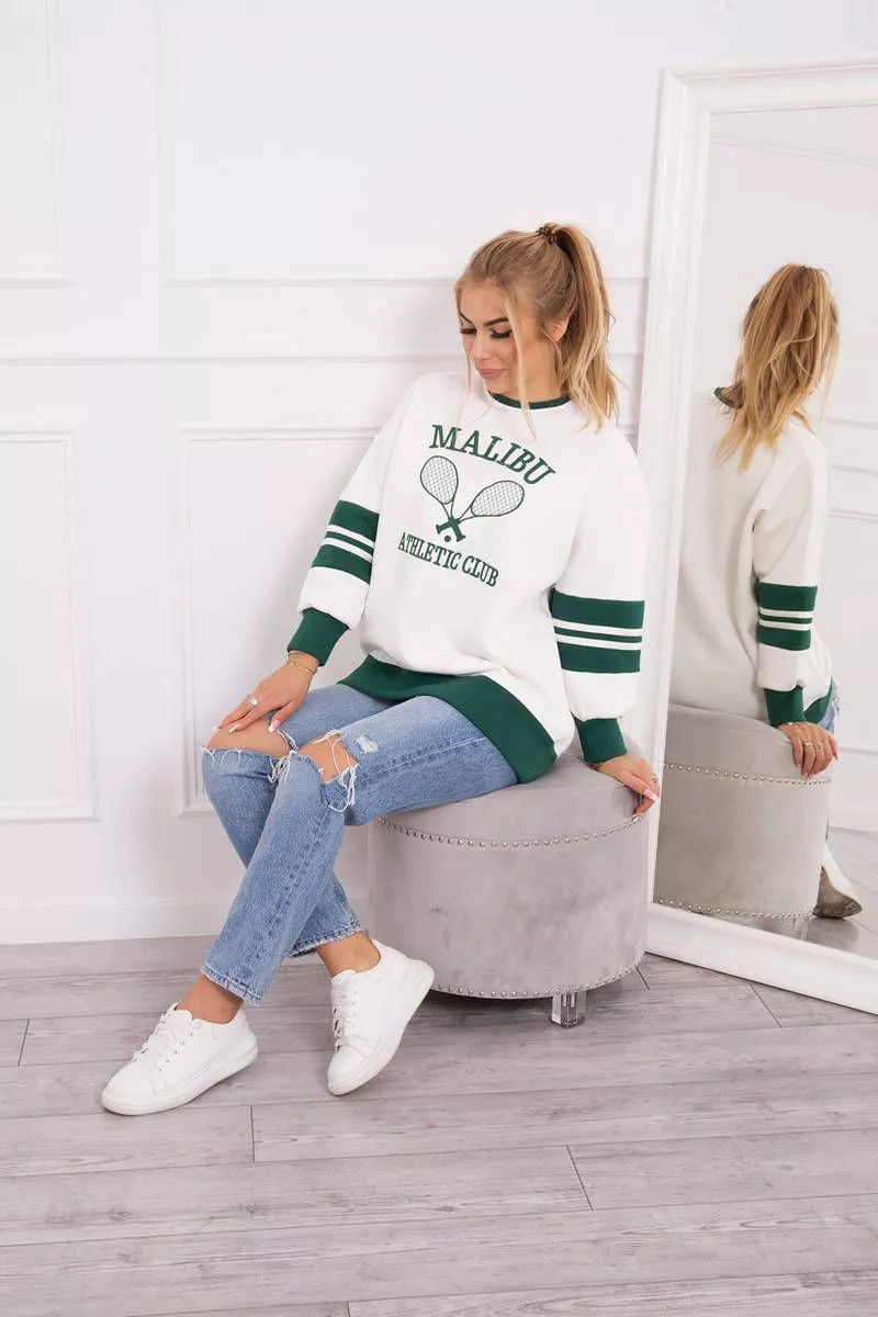 Iti prezentam un hanorac izolant. Hanoracul are inscriptia Malibu. Hanoracul este realizat din material izolant. Marimea este universala si va fi potrivita pentru doamnele care poarta marimile S, M sau L.