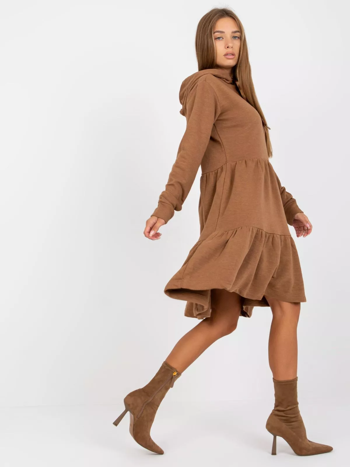 Rochie hanorac evazata maro cu gluga FRESH MADE.