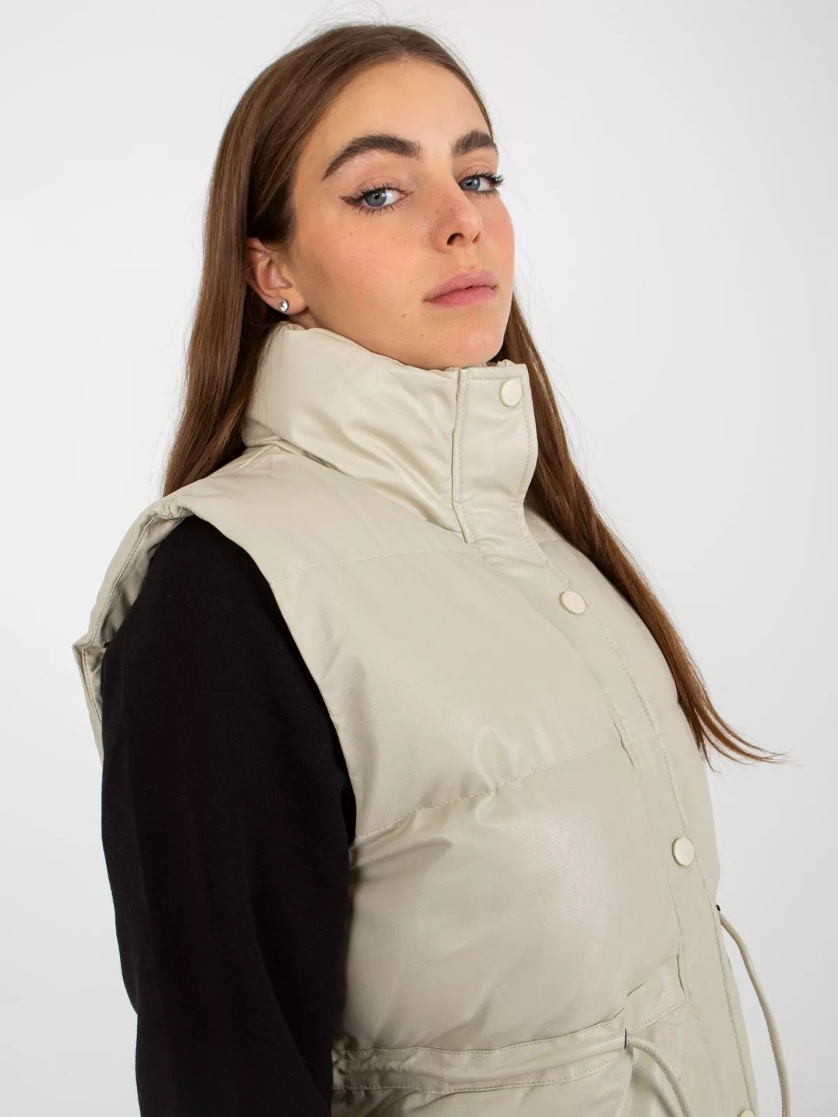Vesca din puf bej deschis din piele ecologica, cu buzunare.