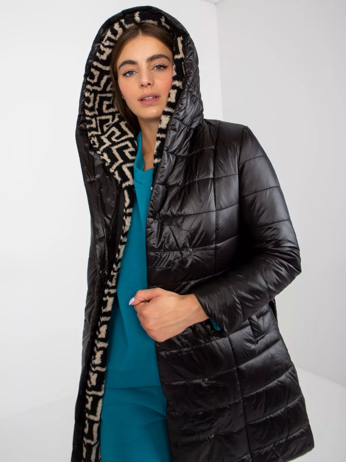 Jacheta de tranzitie matlasata neagra, cu cravate.
