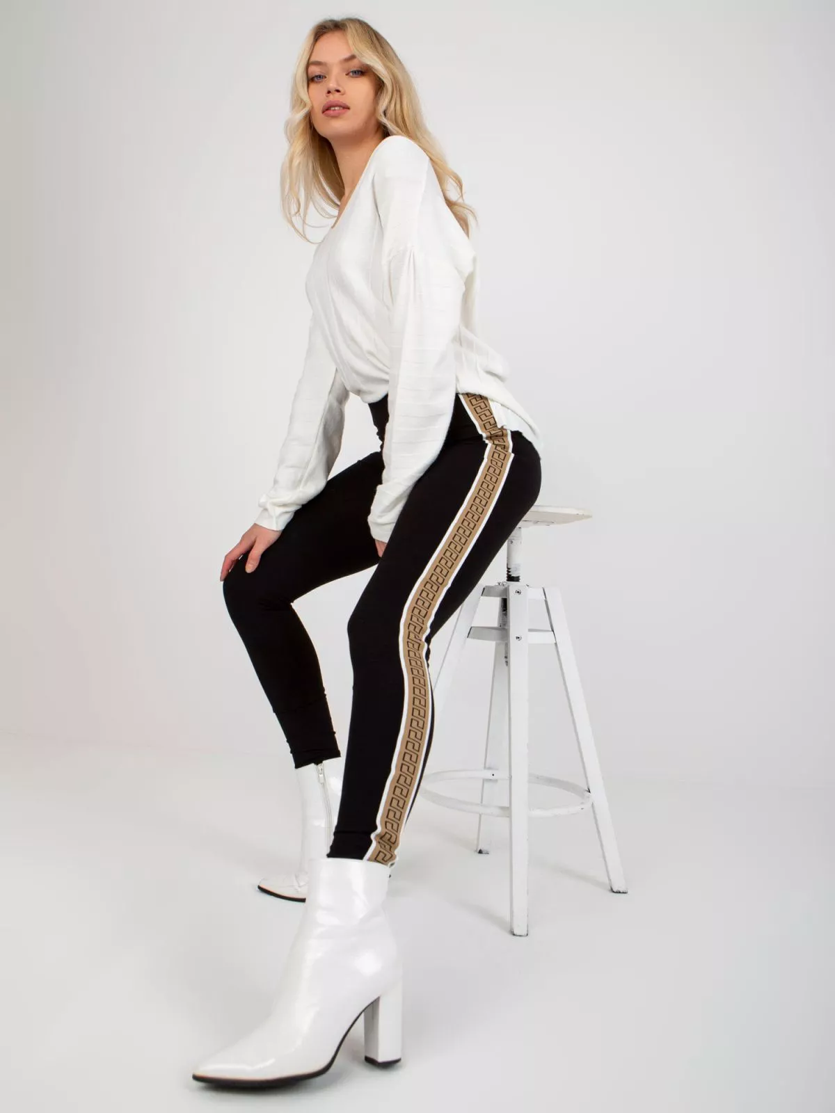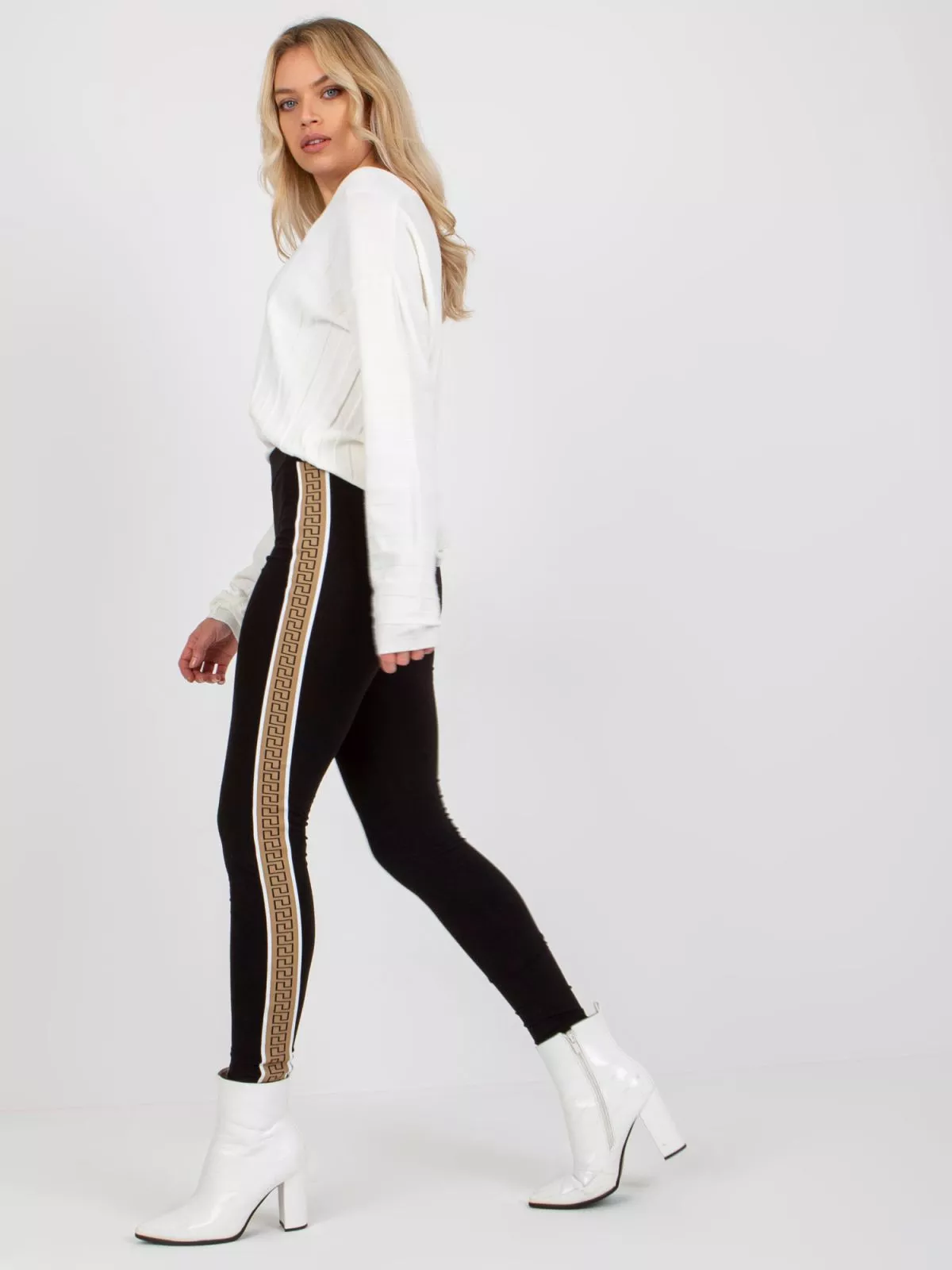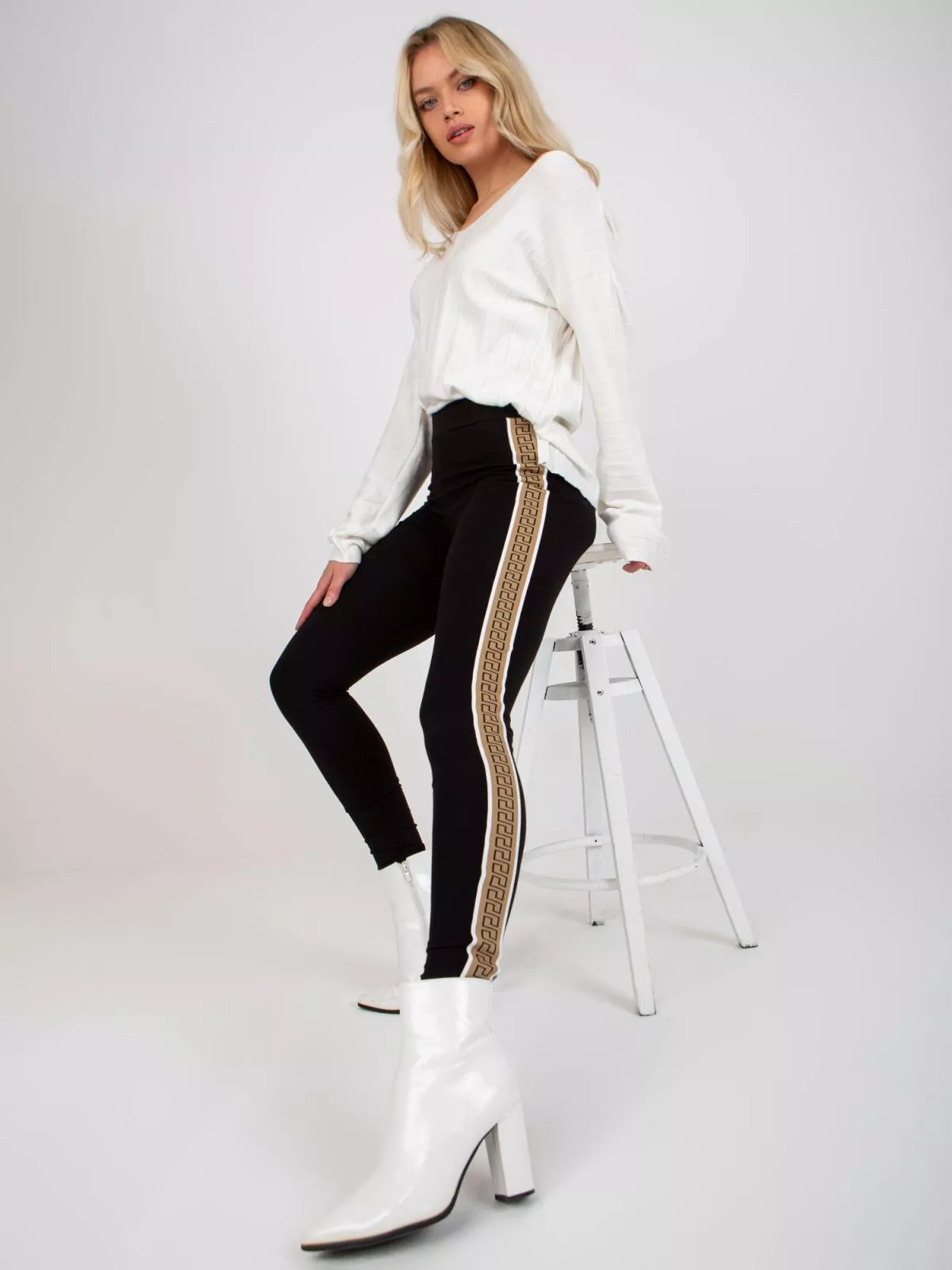 Leggings netezi negri si bej pentru utilizarea de zi cu zi cu dungi.