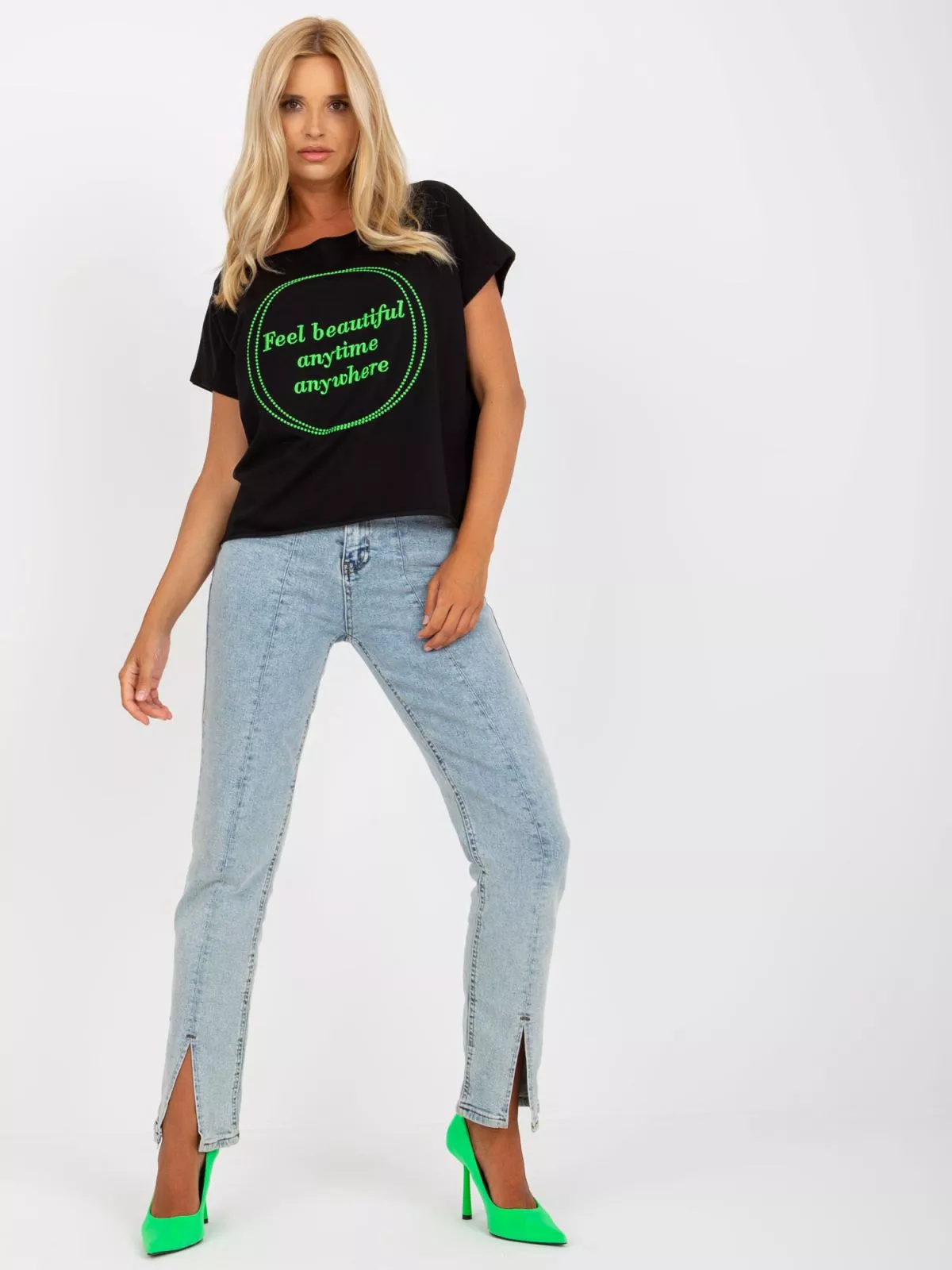 Dimensiunile bluzei in marime unica masurata plat: latime sub brate - 62 cm, lungime totala (fata) - 58 cm, lungime totala (spate) - 62 cm.