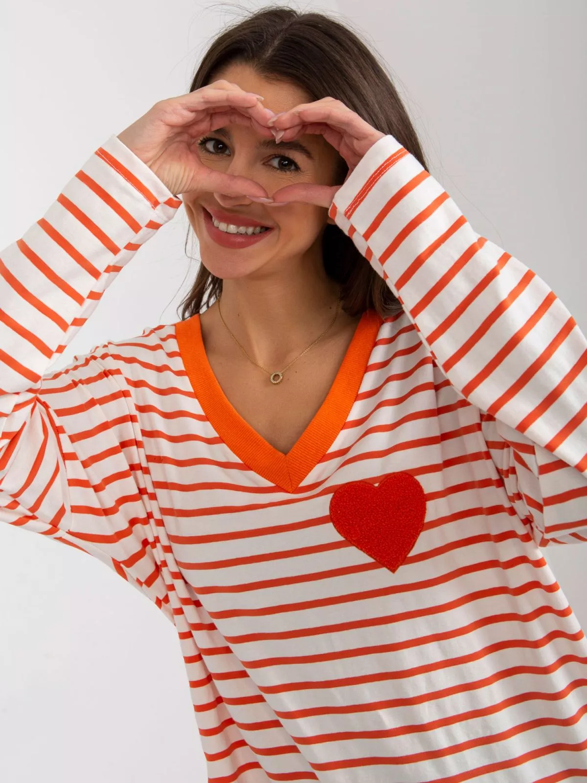 Bluza largi in dungi portocalii si albe, cu decolteu in V.