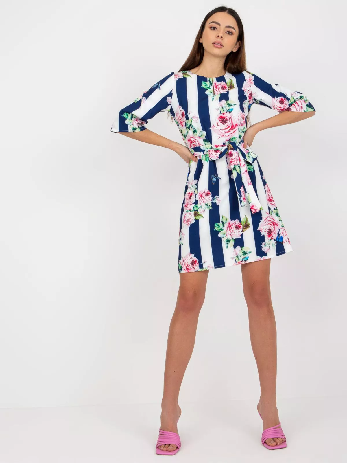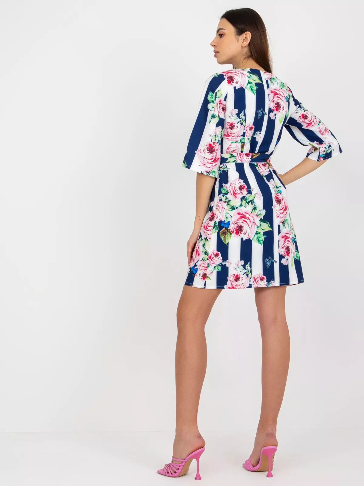Dimensiunile rochiei in marimea 36, aamasurate plat: latime axila 46 cm, - lungime maneca - 38 cm, lungime totala - 91 cm.