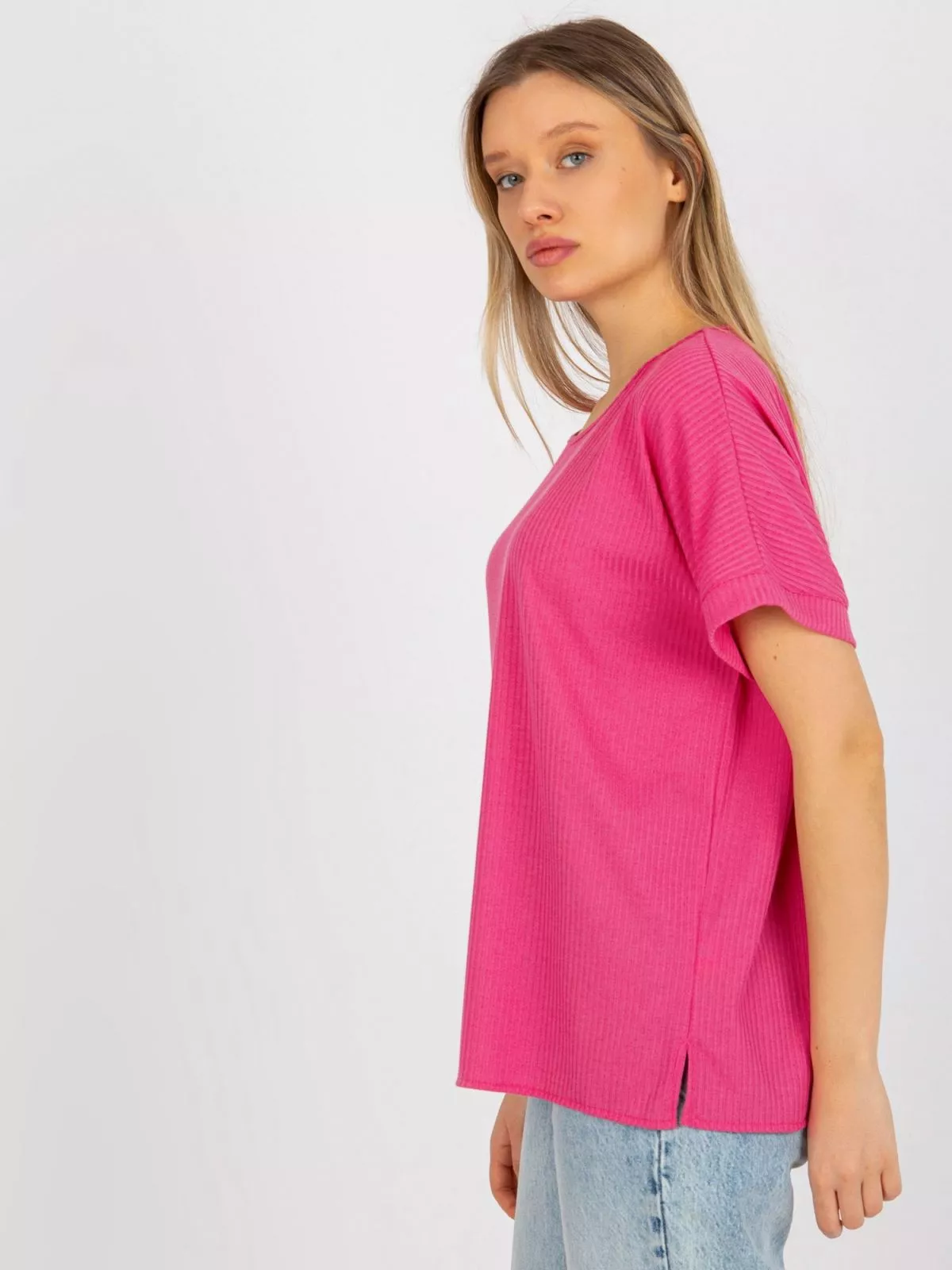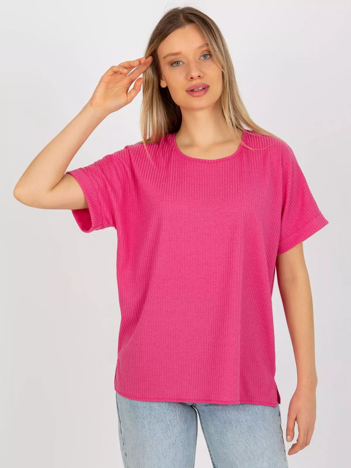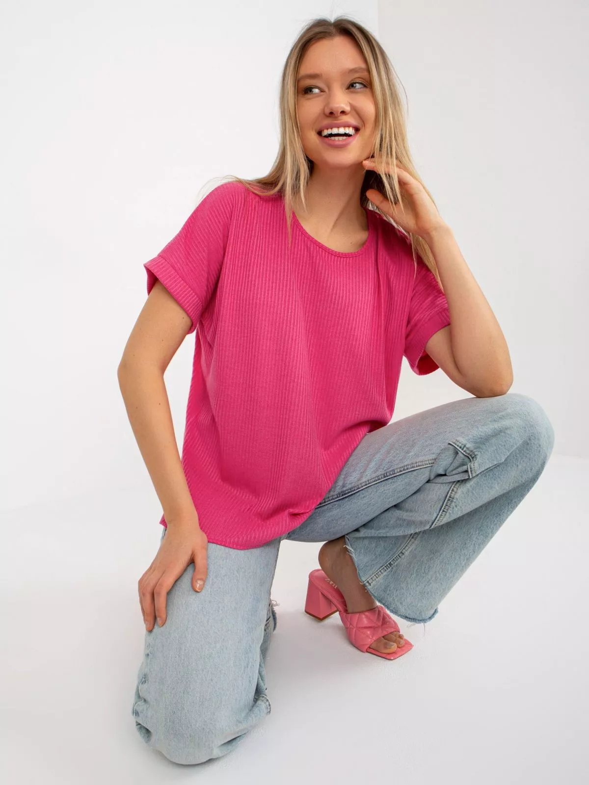 Fuchsia, bluza oversize din bumbac cu nervuri.