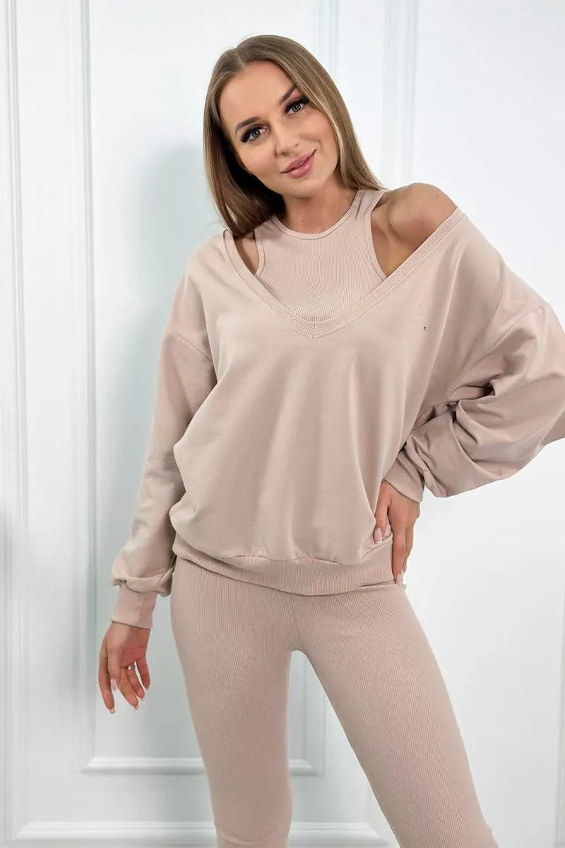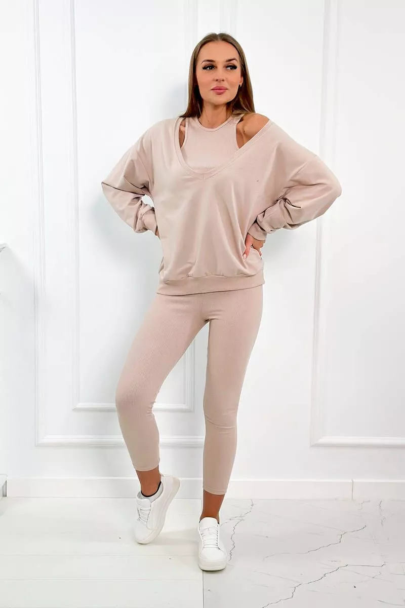 PAedstavujeme vAAm tAAdAlnou sadu. Souprava se sklAAdAA z mikiny, pAilAAhavAAho AAebrovanAAho topu a legAn s vysokAAm pasem. Nahoru a legAny jsou vyrobeny z AAebrovanAAho materiAAlu. Sada je vyrobena z vysoce kvalitnAho materiAAlu. Velikost je univerzAAlnA a vyhovuje dAAmAAm velikosti S nebo M.