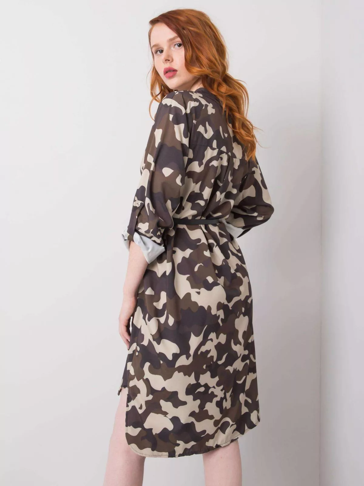 Rochie bej-kaki cu imprimeu de camuflaj.