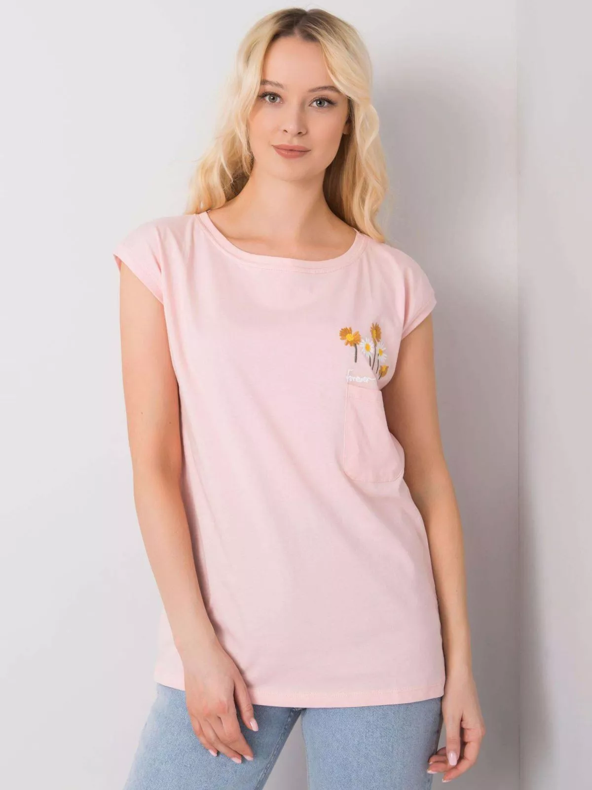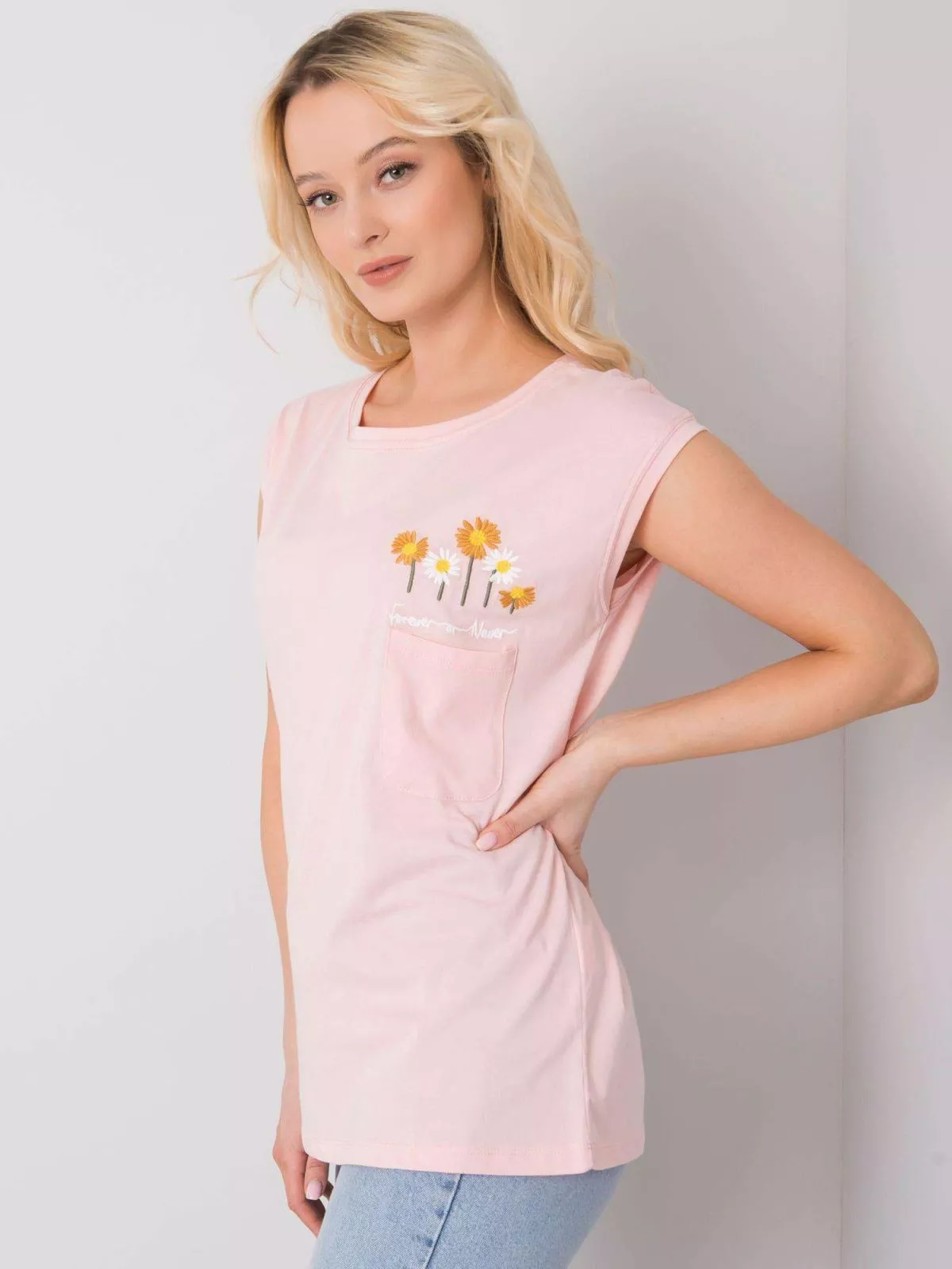 O bluza roz deschis pentru uz zilnic.