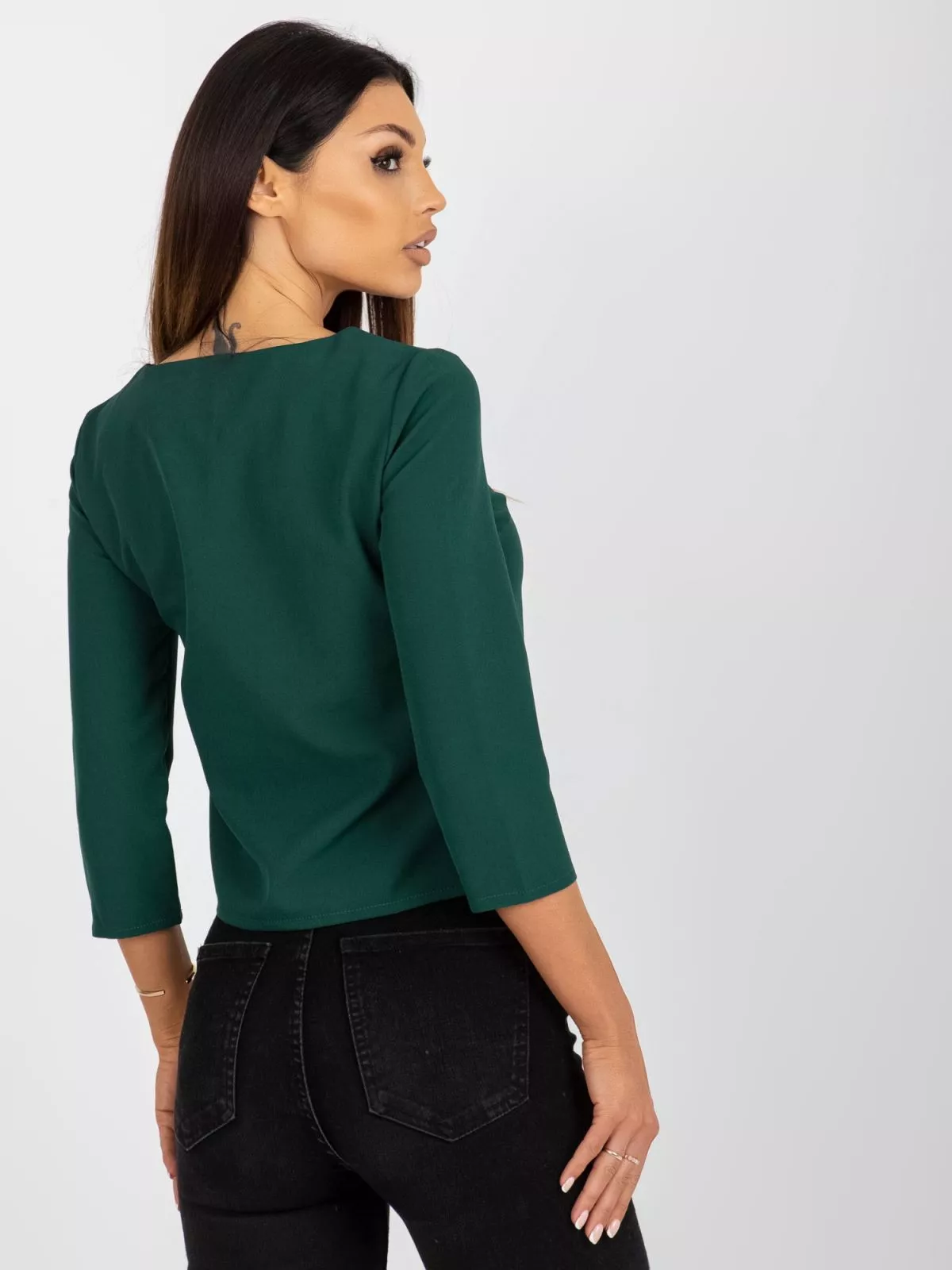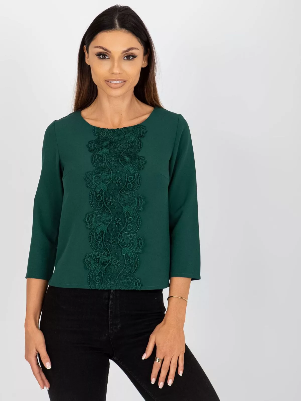 Bluza formala scurta verde inchis cu dantela.