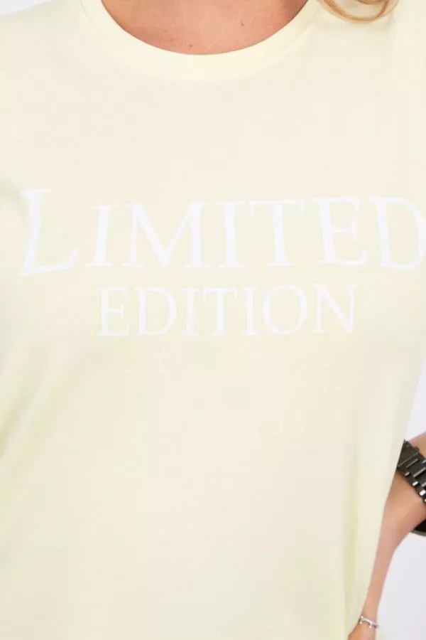 Va prezentam o bluza confortabila cu imprimeu. Imprimati cu cuvintele Editie limitata. Bluza cu maneca scurta suflata. Bluza este confectionata din material de inalta calitate. Marimea este universala si va fi potrivita pentru doamnele care poarta marimile S, M sau L.