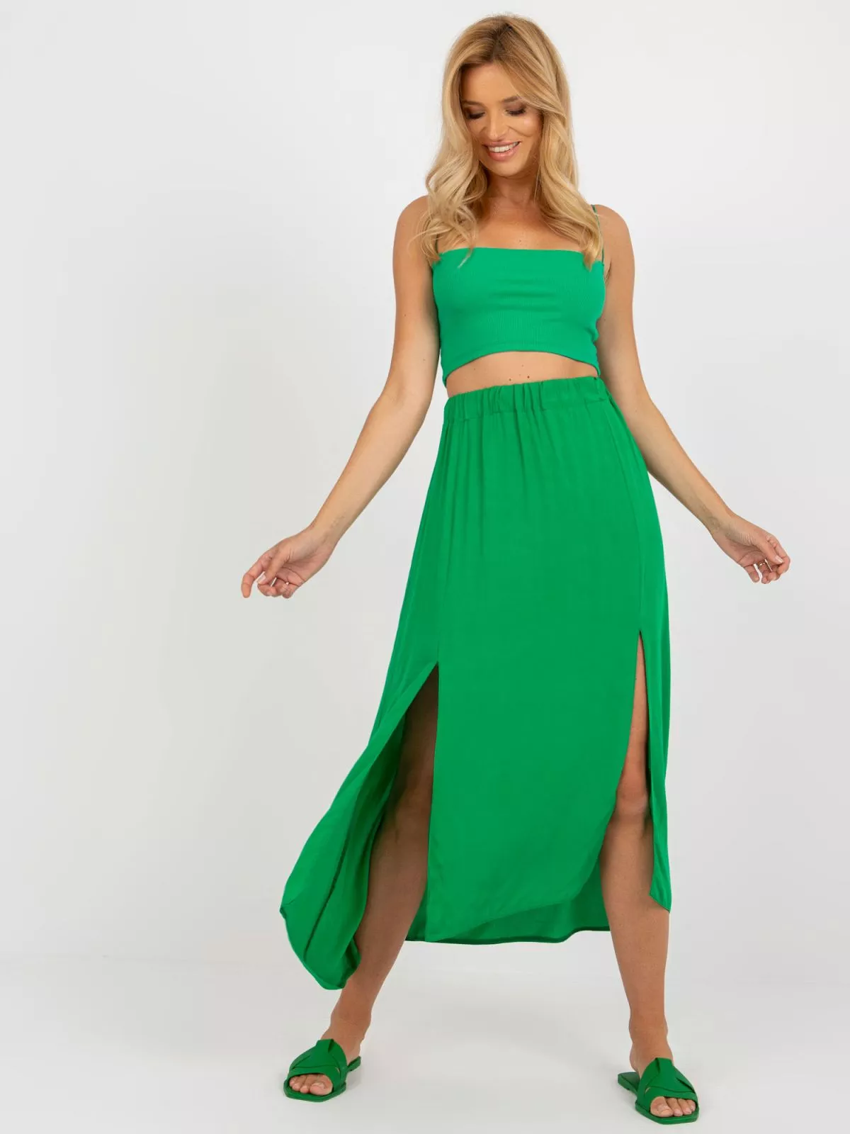 Dimensiunile fustei in marimea S, masurate plat: latime talie - 30 cm lungime totala (fata) - 85 cm, lungime totala (spate) - 98 cm.