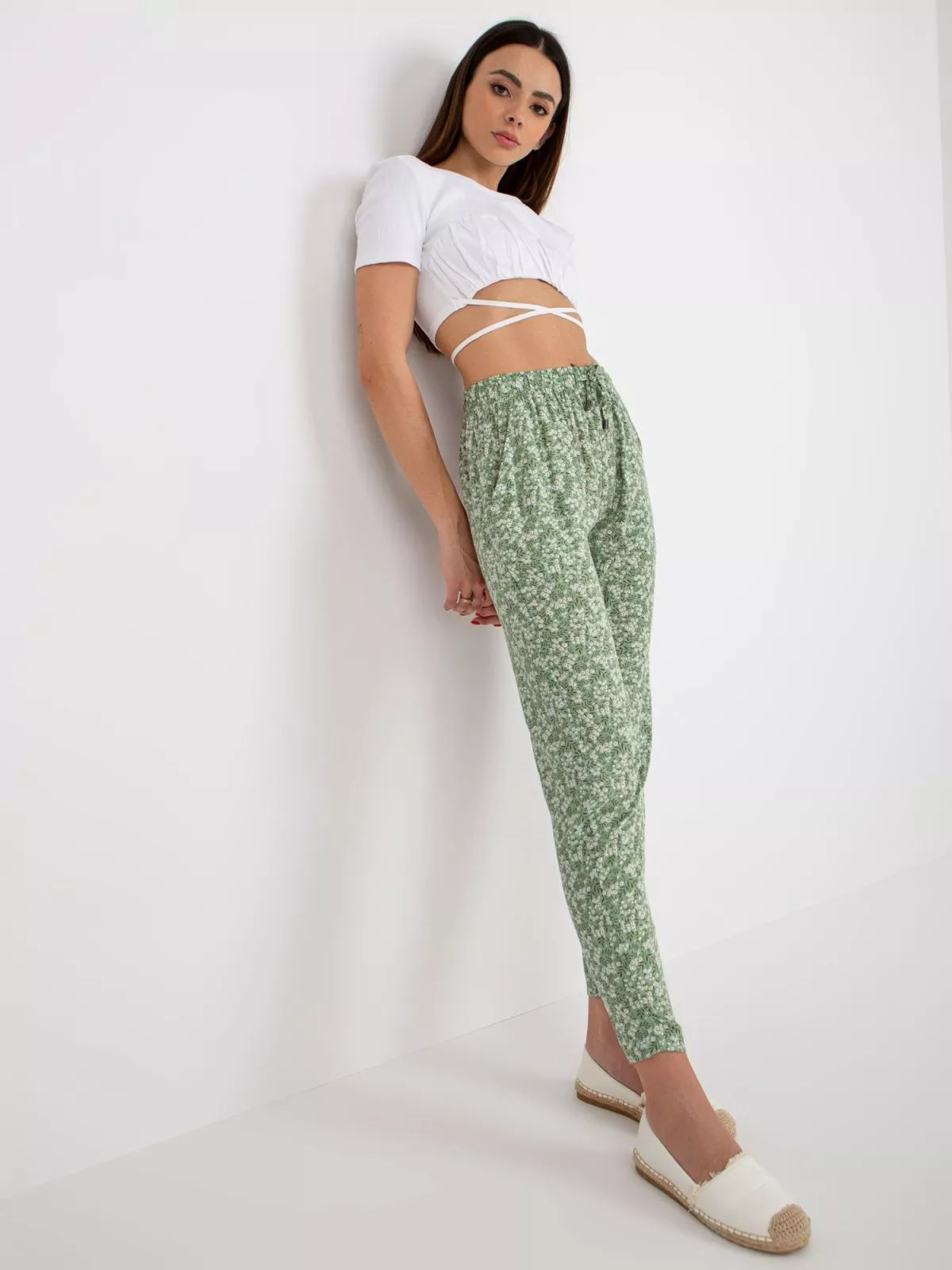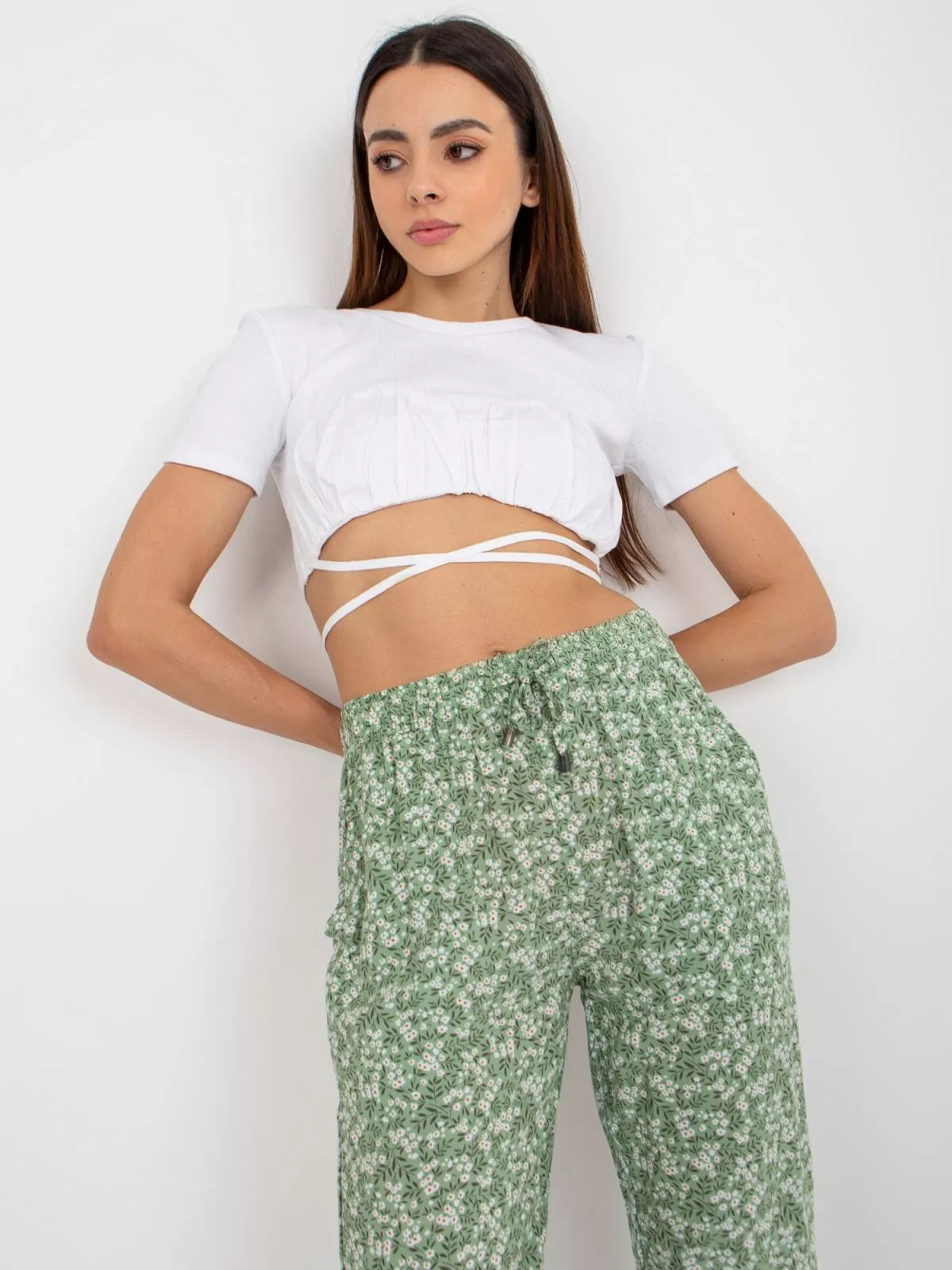 Pantaloni de vara de culoare verde deschis din material floral SUBLEVEL.