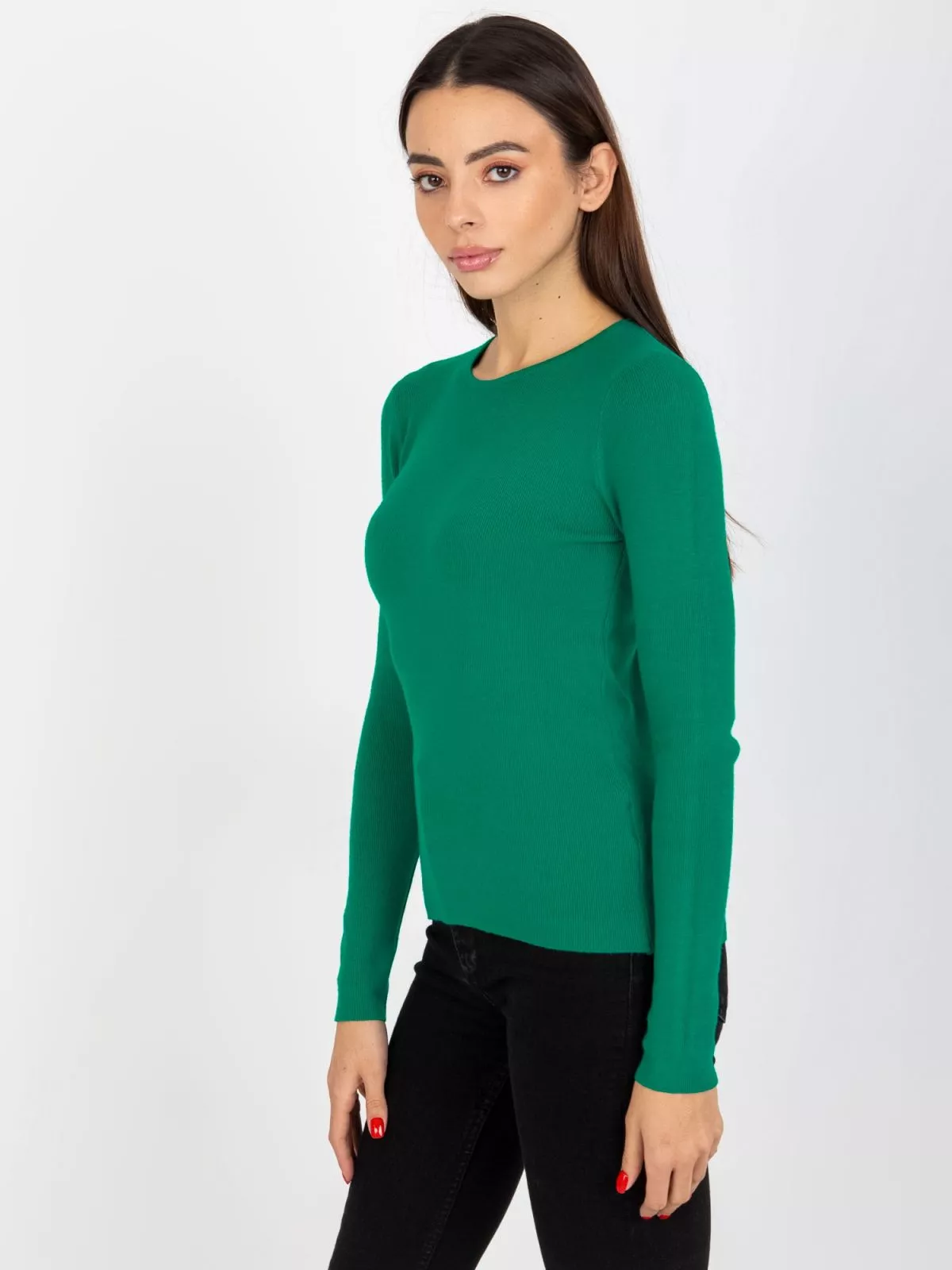 Puover clasic de dama turcoaz cu decolteu rotund.