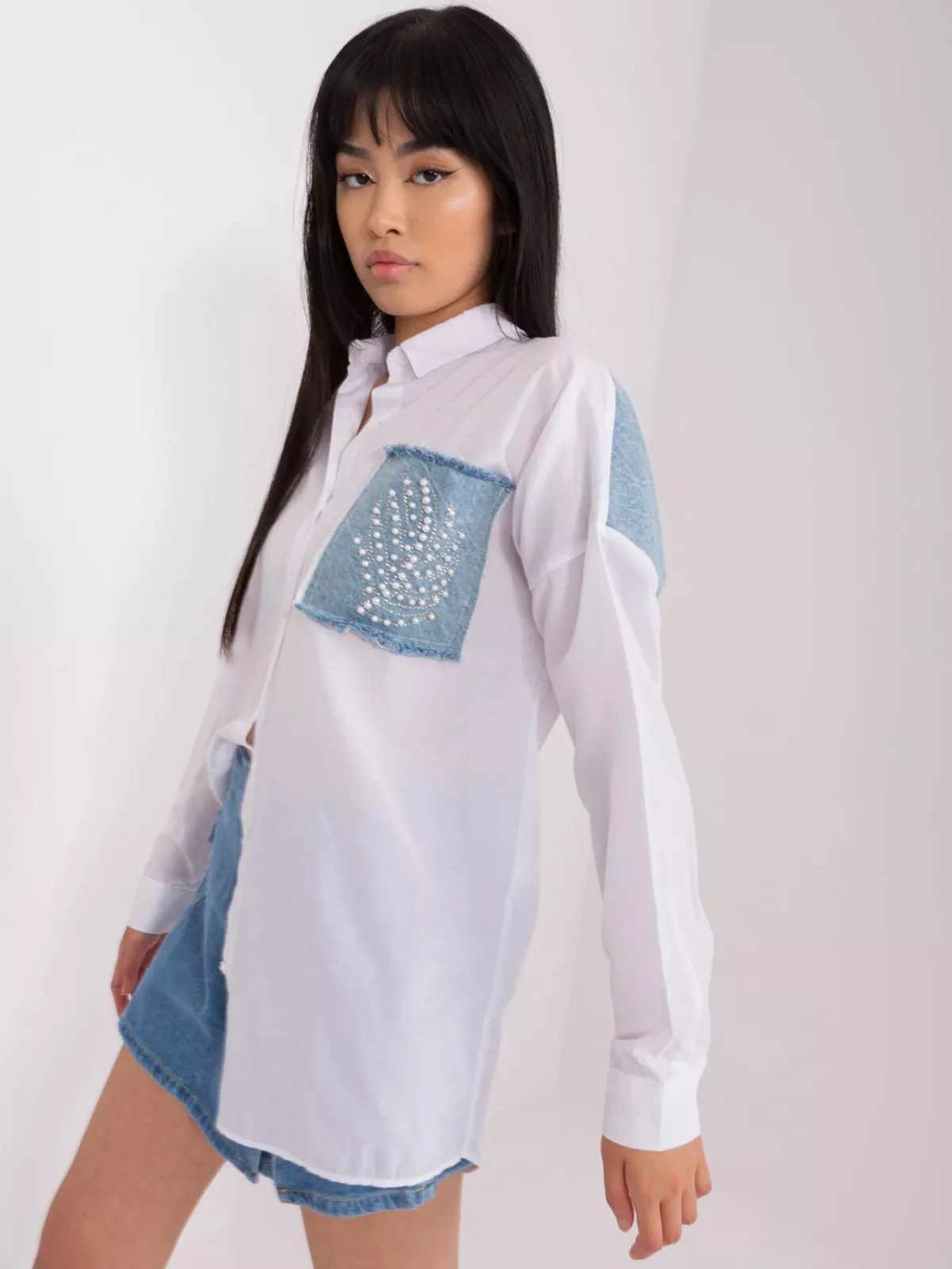 Dimensiunile camasii in marimea S masurate plat: latime subrat - 57 cm, lungime maneca - 63 cm, lungime totala (fata) - 70 cm, lungime totala (spate) - 75 cm.