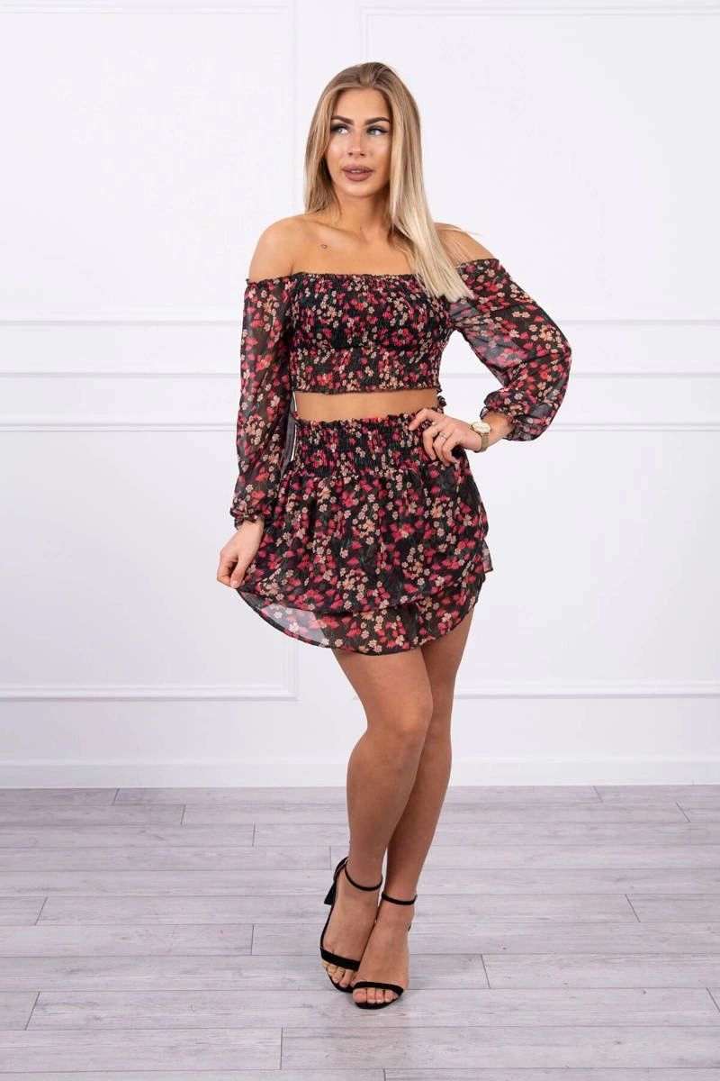 PAedstavujeme vAAm sadu halenky a suknA. Halenka a kvAtinovAA suknA. SuknA e volAAnky. Sada je vyrobena z vysoce kvalitnAho materiAAlu. Velikost je univerzAAlnA a vyhovuje dAAmAAm, kterAA nosA velikost S, M nebo L.