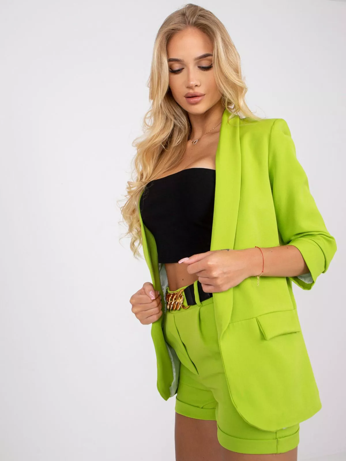 Dimensiunile setului in marimea S, masurata plat: latimea 8 cm sub brat, -4 cm. lungime jacheta - 70 cm, lungime maneci - 47 cm, latime talie pantaloni scurti - 33 cm, lungime pantaloni scurti - 38 cm.