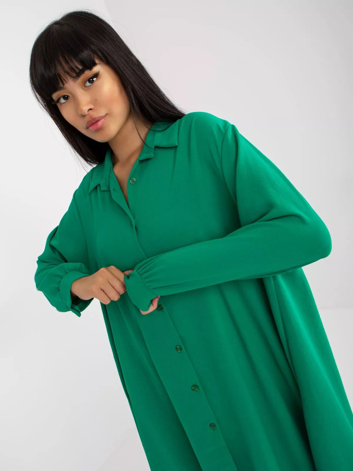 Dimensiunile rochiei in marime unica, masurata plat: latimea axilelor - 63 cm, lungimea manecii - 56 cm, lungime lungime totala (fata) - 80 cm, lungime totala (spate) - 97 cm.