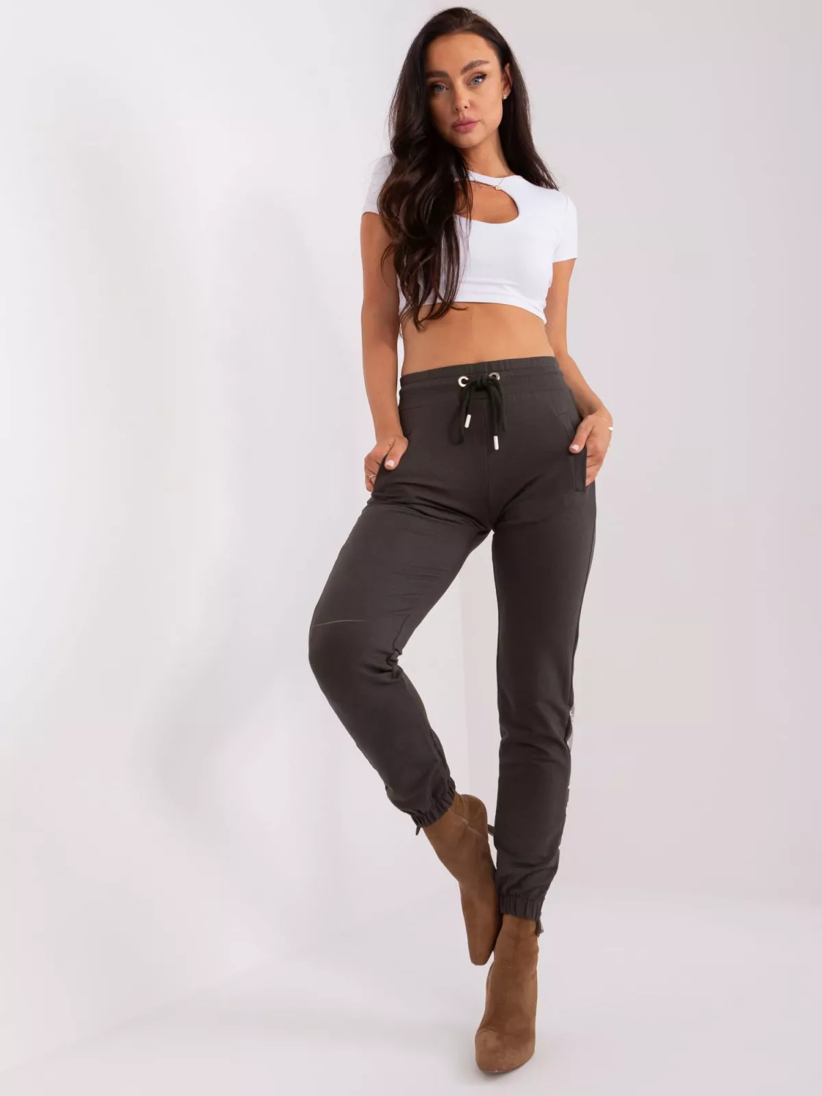 Pantaloni de trening dama kaki cu cravate.