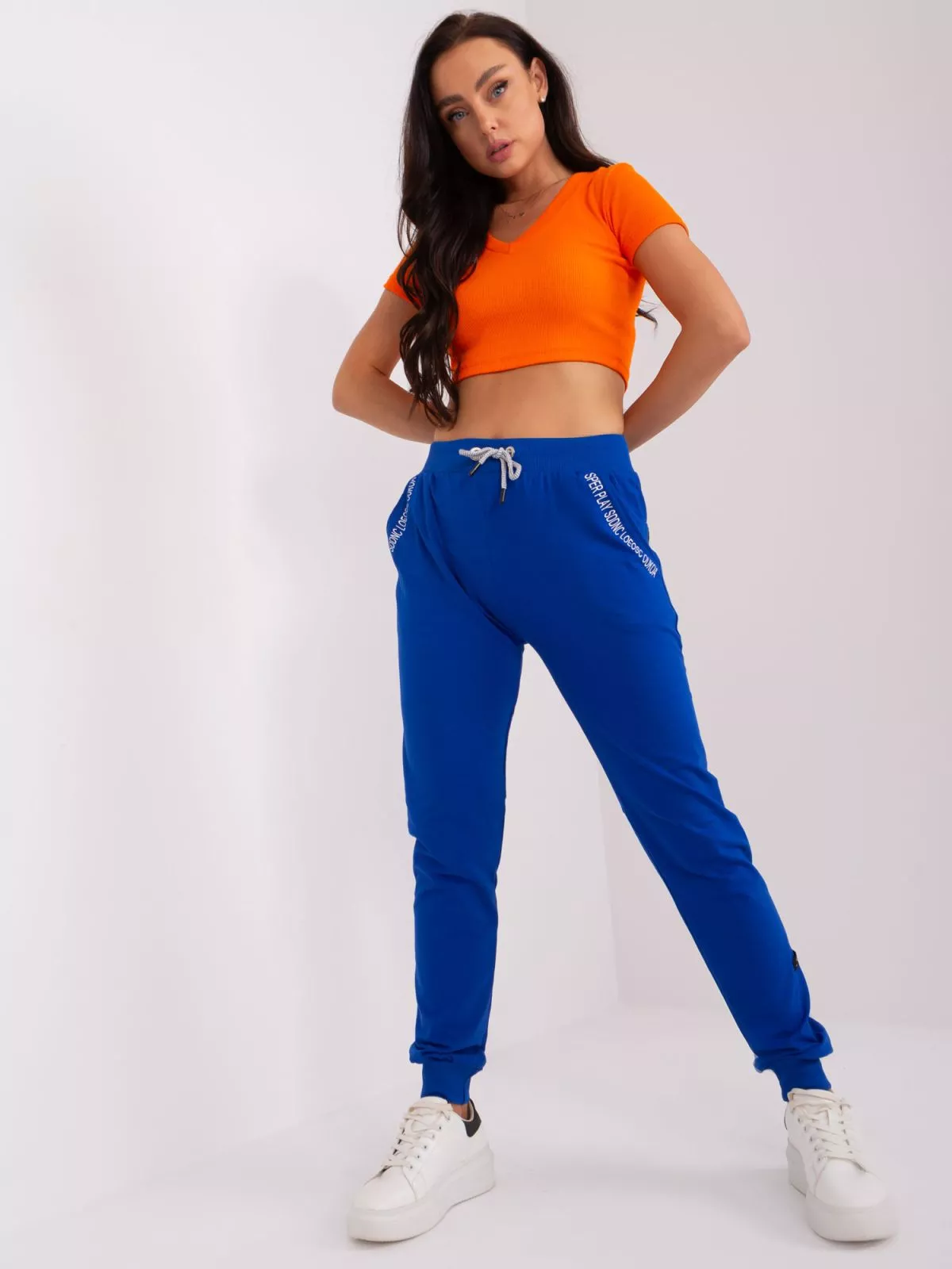 Pantaloni de trening albastru cobalt cu buzunare.