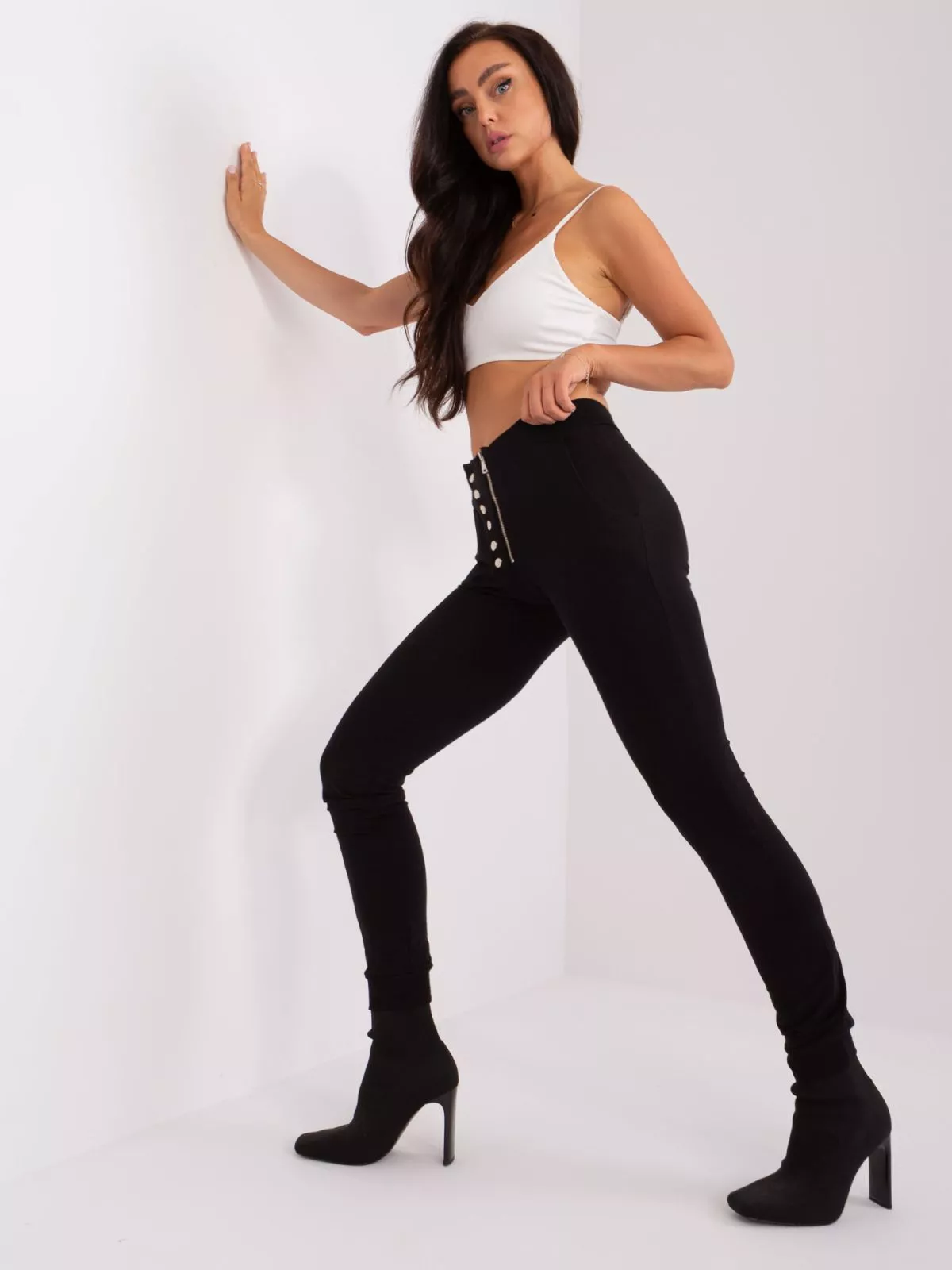 Pantaloni de trening de dama negri cu fermoar.