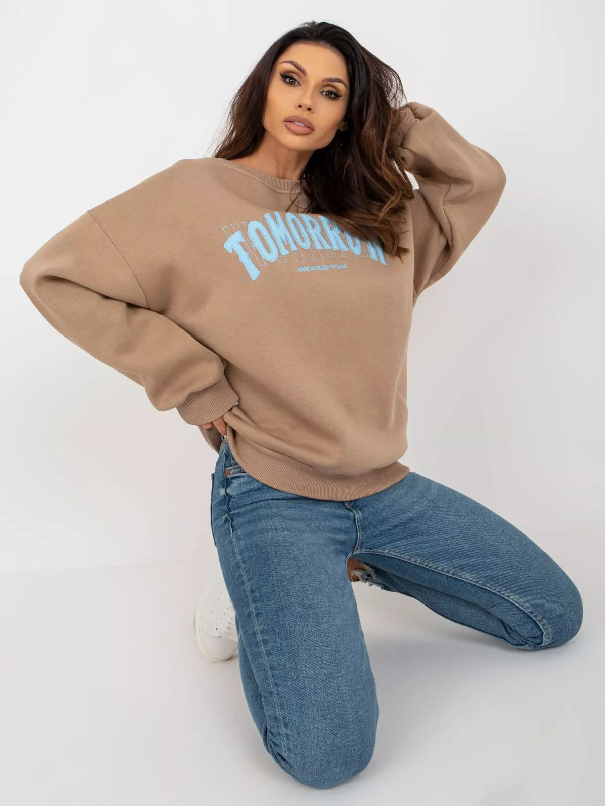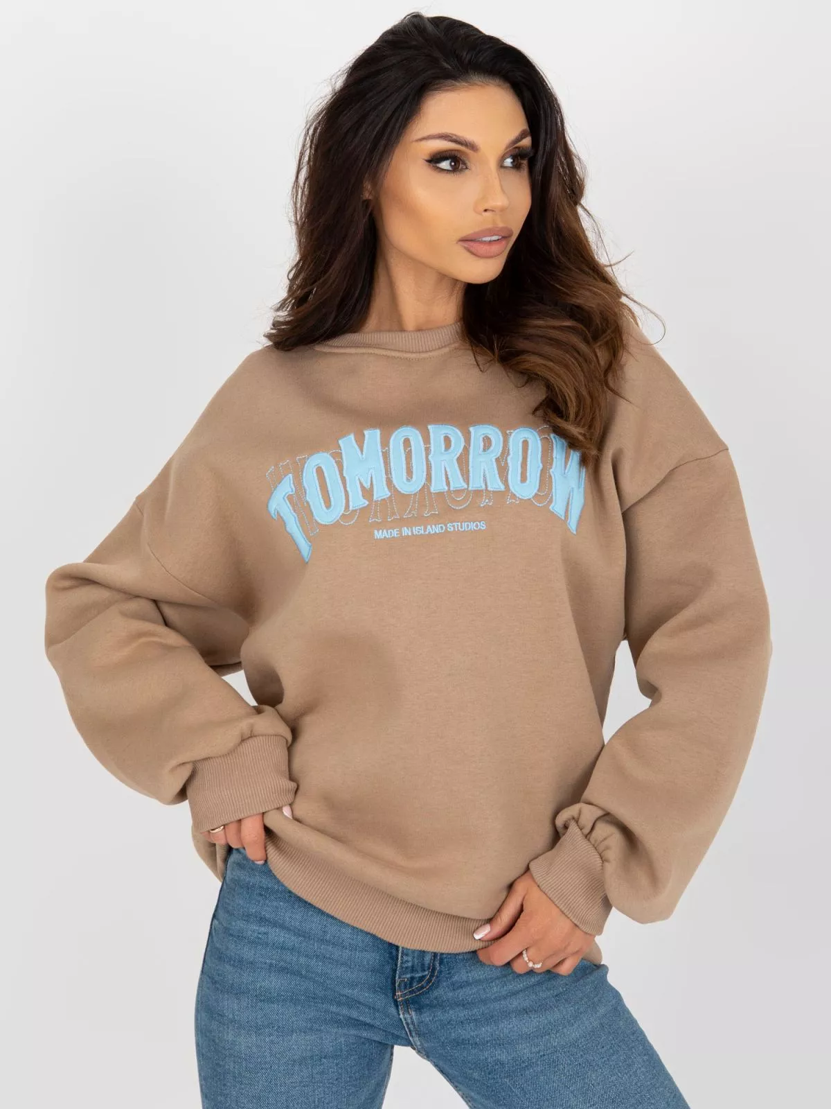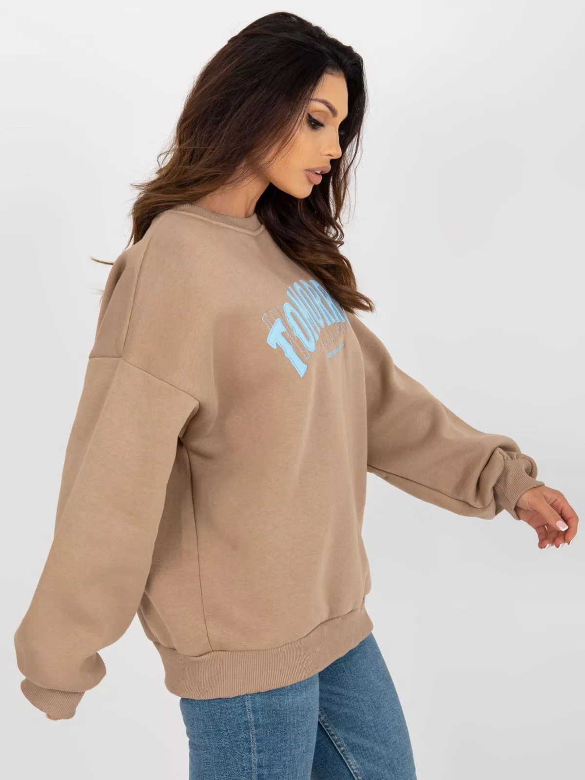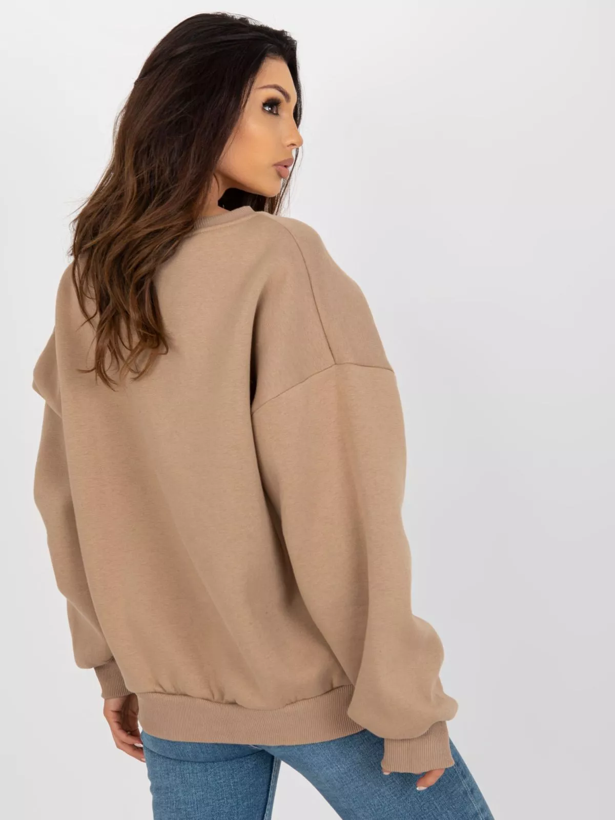 Haorac bej inchis fara gluga, croiala oversize.