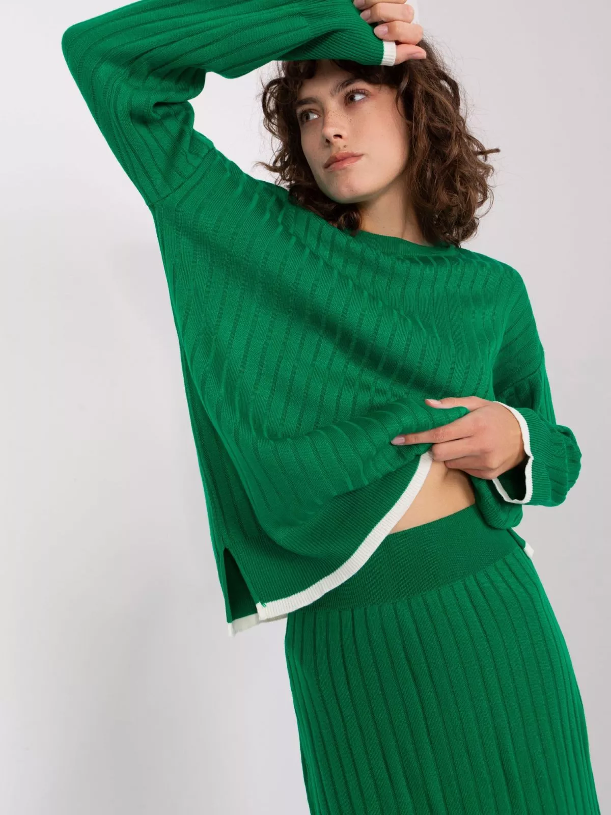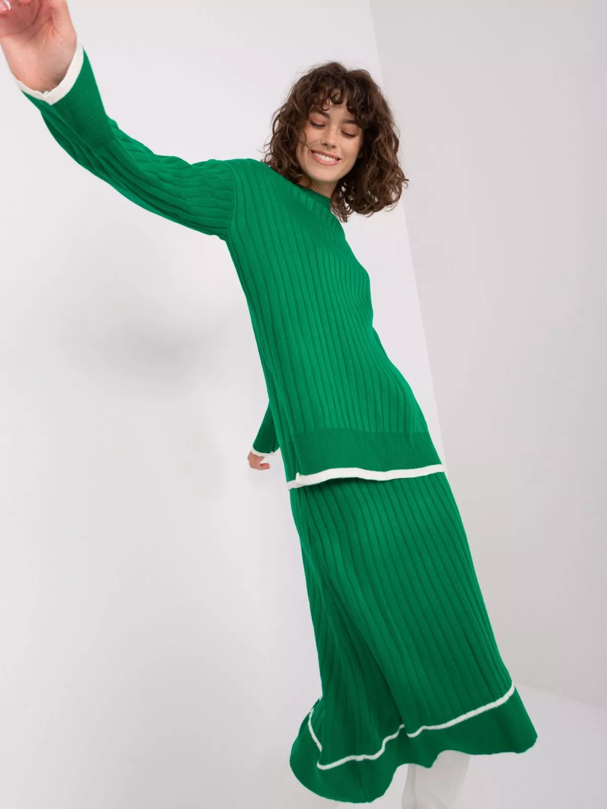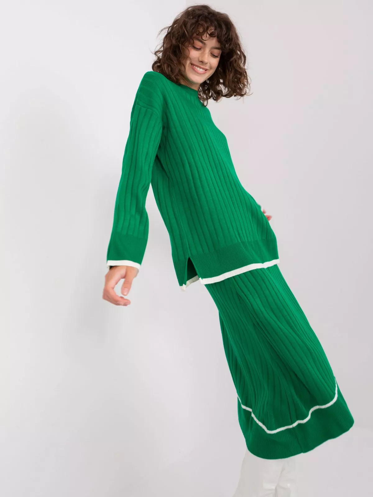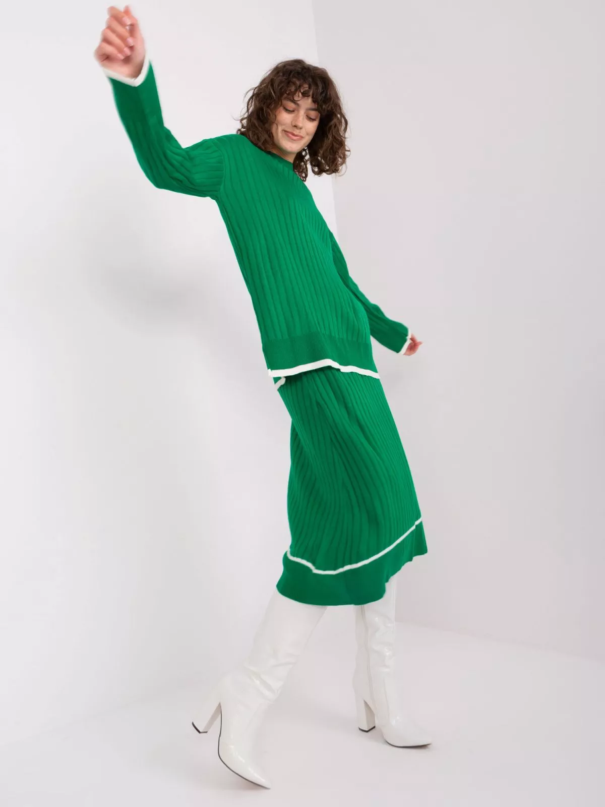 Set de dama tricotat verde din doua piese.
