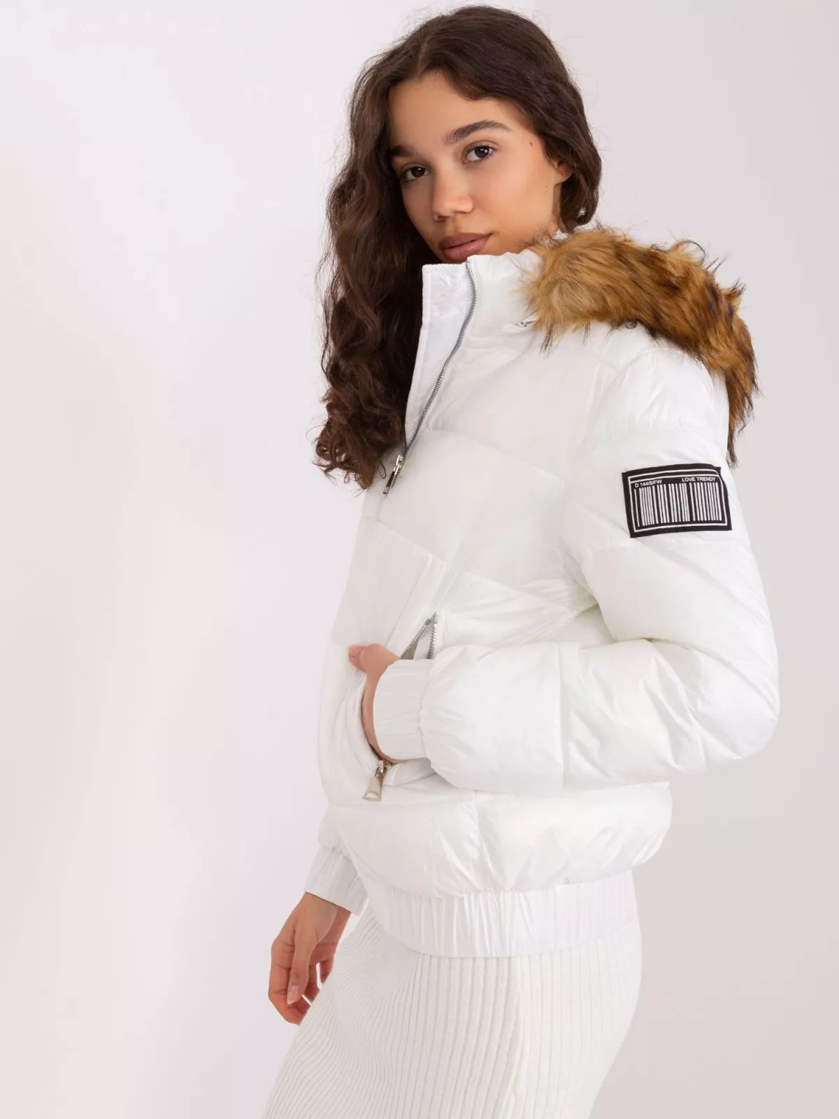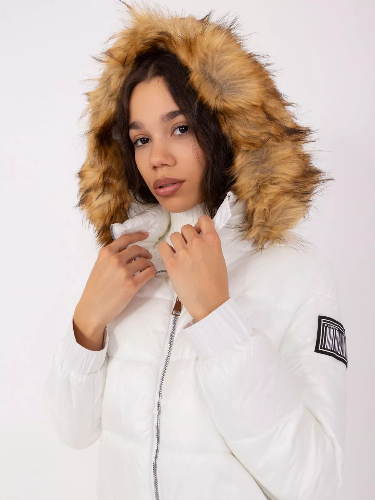 Jacheta alba de iarna cu gluga detasabila.