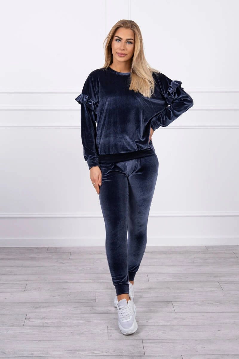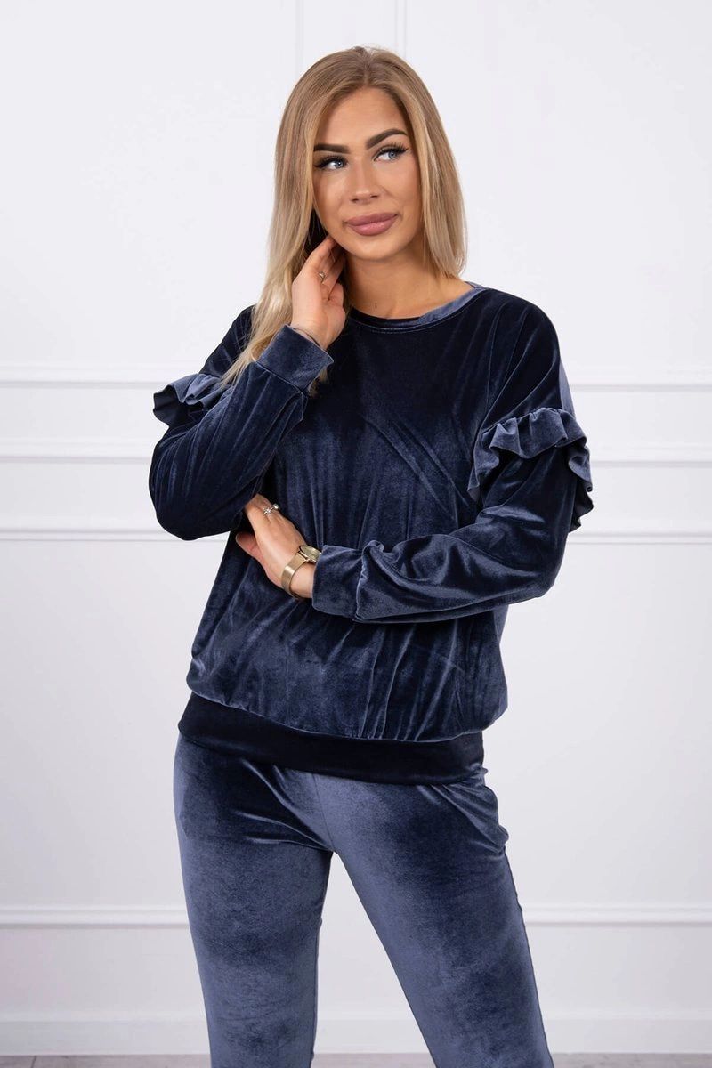 PAedstavujeme vAAm sadu mikiny a kalhot. Sada z veluru. Halenka este volanky. Kalhoty s kapsami a zavazovAAnAm v pase. Velmi mAAdnA a stylovAA sada. Sada je vyrobena z vysoce kvalitnAho materiAAlu. Velikost je univerzAAlnA a vyhovuje dAAmAAm velikosti S, M nebo L.