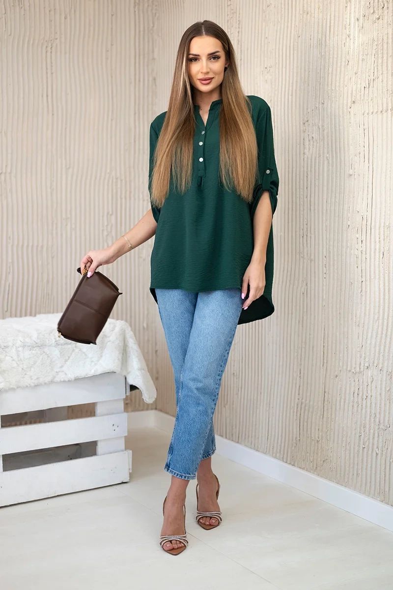 Objevte mimoAAAdnou eleganci a pohodlA v prezentovanAA halence s delAAAmi zAAdy, knoflAkovAAm vAAstAihem a ohrnutAAmi rukAAlenavy, tavyajen vAAjimeAnA stylovA, ale poskytuje takAA bezkonkurenAnA funkAnost. CiAAte se sebevAdomA a elegantnA v halence, kterAA podtrhne vAAAA jedineAnAA styl. DAky delAAAm zadnAm dAlAAm vytvoAAte jemnAA a mAAdnA nepravidelnAA proporce a knoflAkovAA vAAstAih vAAm umoAAnA upravit si halenku podle vaAAich preferencA. VyhrnutAA rukAAvy dodAAvajA halence lehkost a leAAAArnA charakter, ideAAlnA pro rAAznAA pAAleAAitosti. AAA uAA se jednAA o obchodnA jednAAnA nebo relaxaAnA kAAvu s pAAAteli, naAAe halenka vAAm poskytne pohodlA a styl v jednom. Nenechte si ujAt pAAleAAitost pAidat do svAAho AAatnAku tuto jedineAnou halenku! Objevte eleganci, pohodlA a funkAnost v jednom a zdAAraznAte svAAj jedineAnAA styl jeAAtA dnes. Velikost je univerzAAlnA a bude vhodnAA pro AAeny, kterAA nosA velikost S, M nebo L.