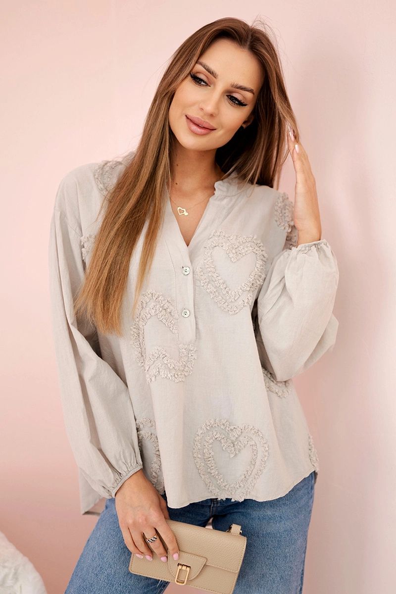 KoAAilovAA halenka vyrobenAA z vysoce kvalitnA bavlny je ideAAlnAm spojenAm pohodlA a AAenskAAho kouzla. JejA lehkAA, prodyAAnAA tkanina zajiAAAAuje komfort po celAA den, zatAmco klasickAA koAAilovAA stAih dodAAvAA eleganci. RoztomilAA vzor srdcA dodAAvAA halence jemnou romantiku, dAky AemuAA je skvAlou volbou jak pro kaAAdodennA noAAenA, tak i pro speciAAlnA pAAleAAitosti. MAAAAete ji kombinovat s dAAAnami pro leAAAArnA vzhled nebo ji nosit se suknA pro elegantnAjAAA outfit. Zvolte bavlnAnou koAAilovou halenku se srdAAky, pokud chcete do svAAho AAatnAku pAidat lehkost a jedineAnAA styl. Velikost je univerzAAlnA a vhodnAA pro AAeny nosAcA velikost S, M nebo L.