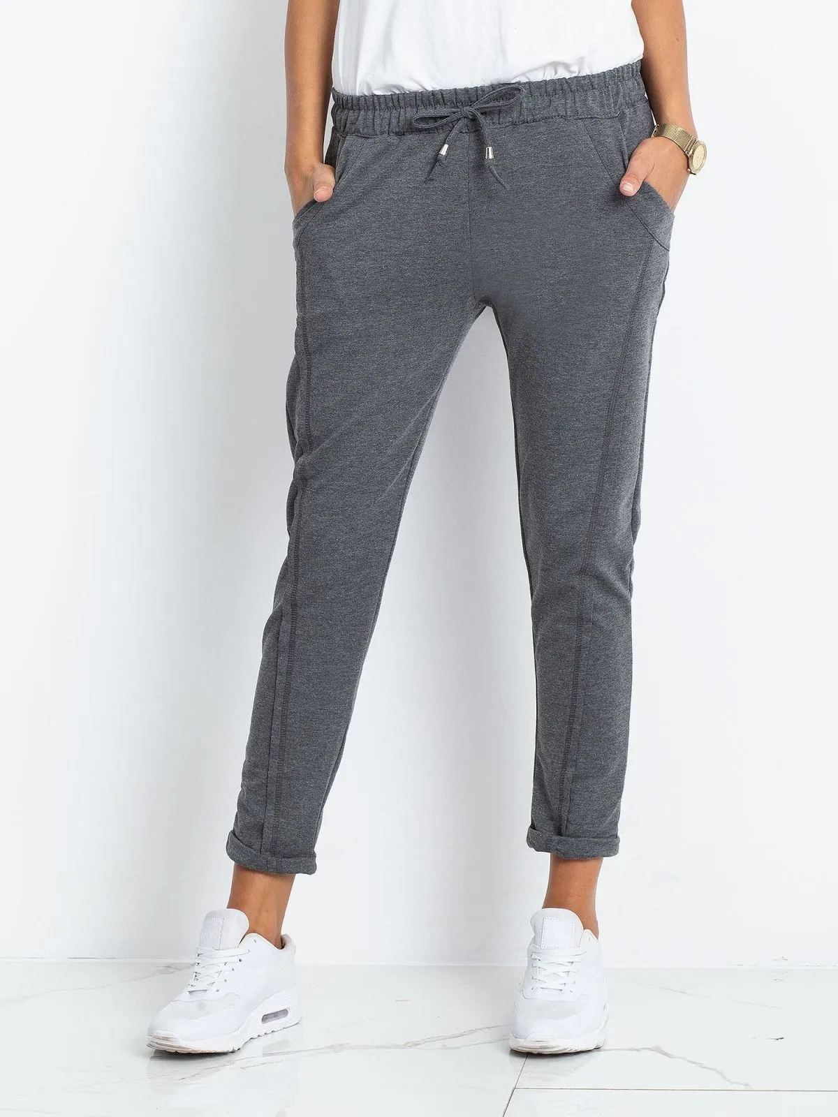 Pantaloni de trening gri inchis.