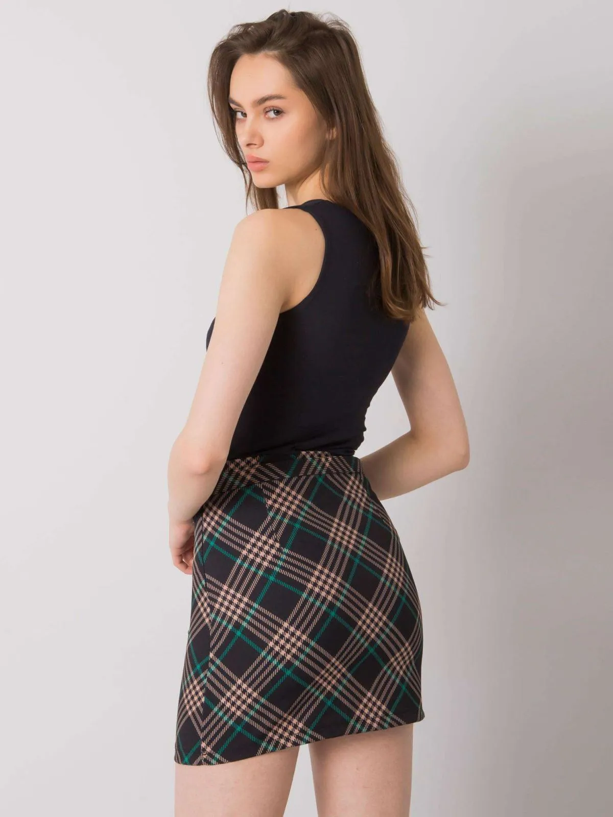 Fusta creion in carouri neagra si verde.