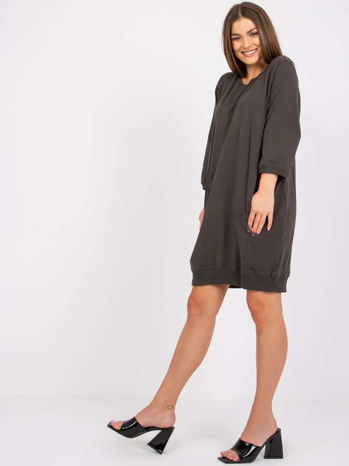 Dimensiunile rochiei in marimea S/M masurate plat: latime axila - 53 cm, lungime totala - 91 cm, lungime maneci - 45 cm.
