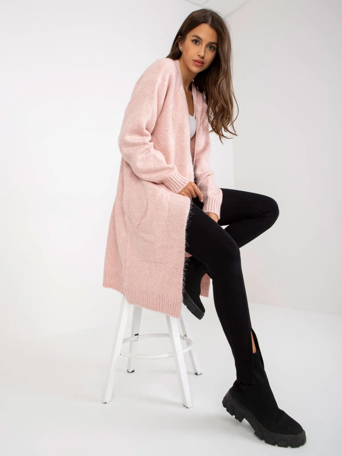 Dimensiunile cardiganului in marime unica, masurate plat: latime axila - 60 cm, lungime totala - 95 cm, lungime maneca - 64 cm.