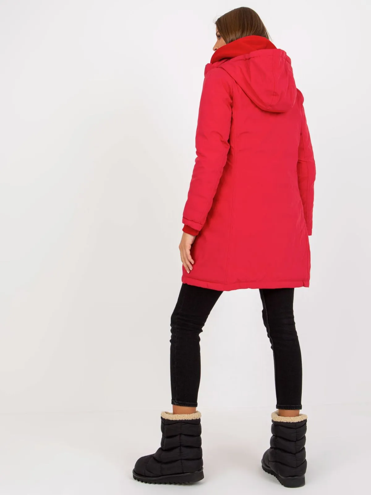 Jacheta de tranzitie reversibila rosie cu gluga.