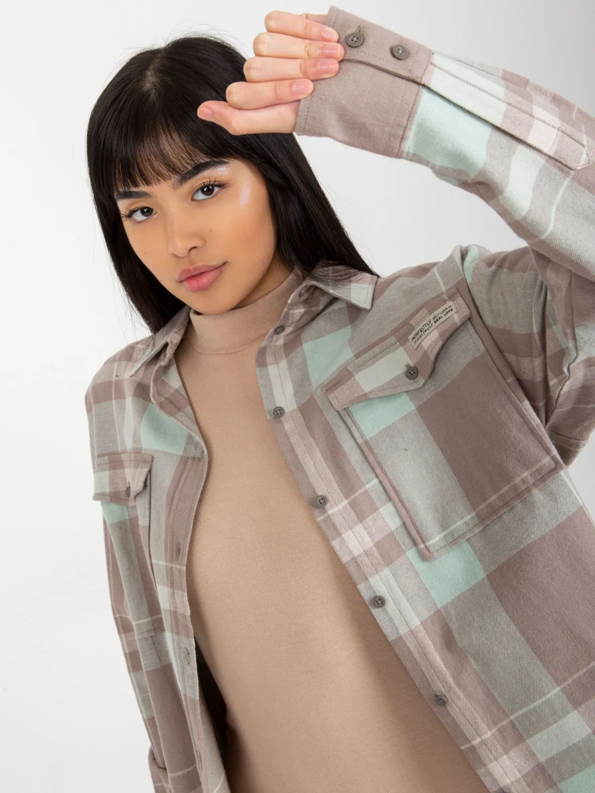 Camasa largi in carouri bej inchis, cu spatele mai lung.