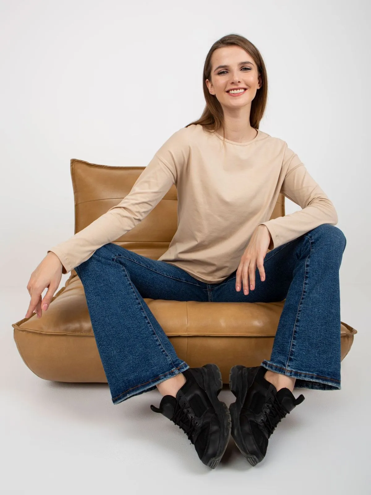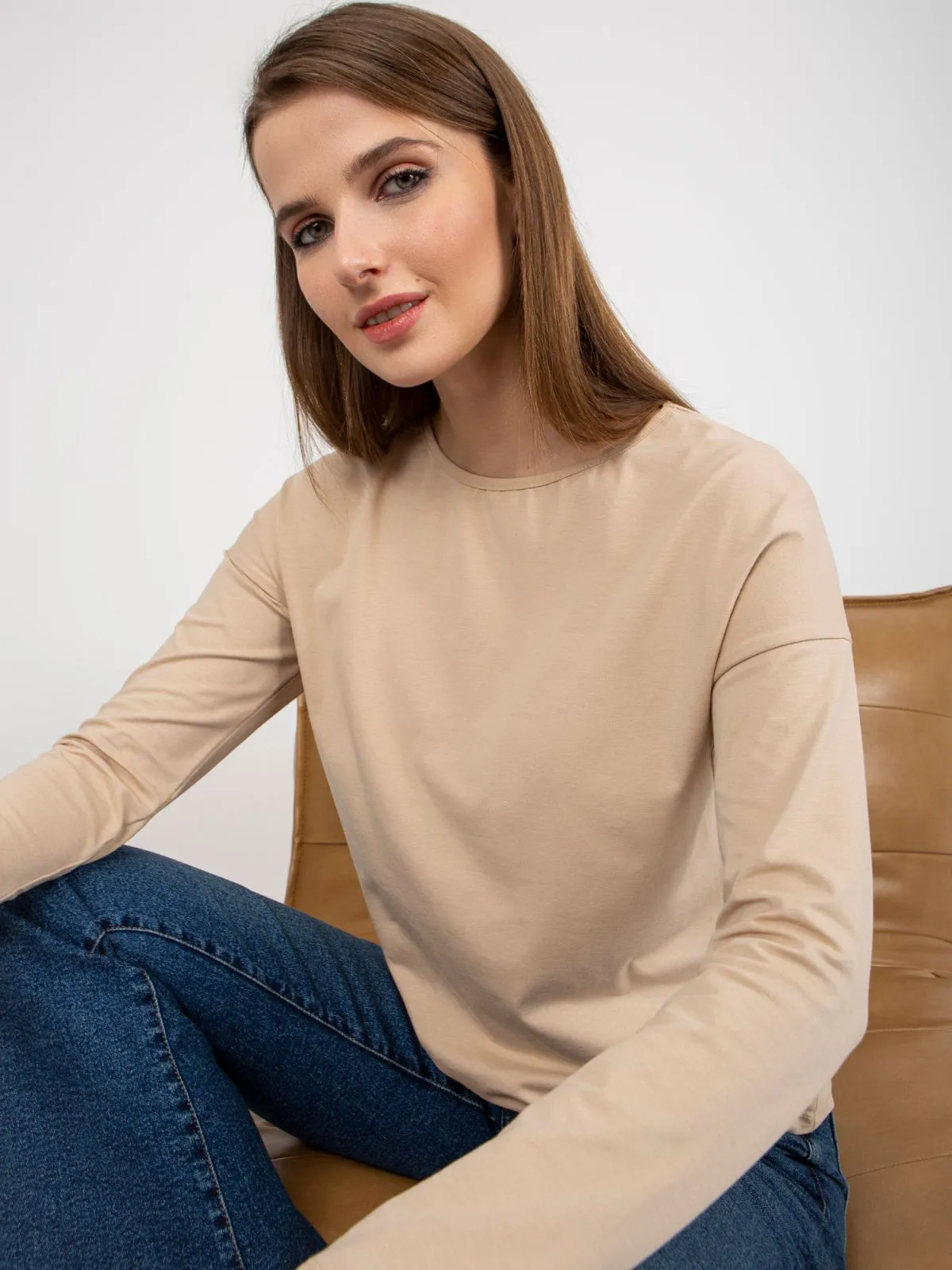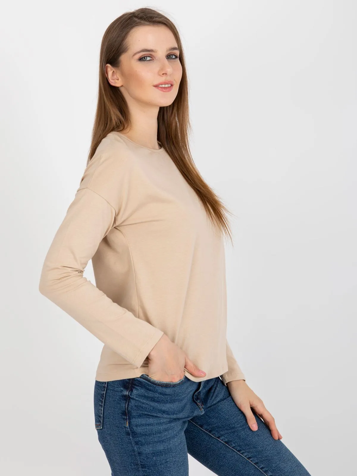 Bluza bej din bumbac cu maneca lunga.