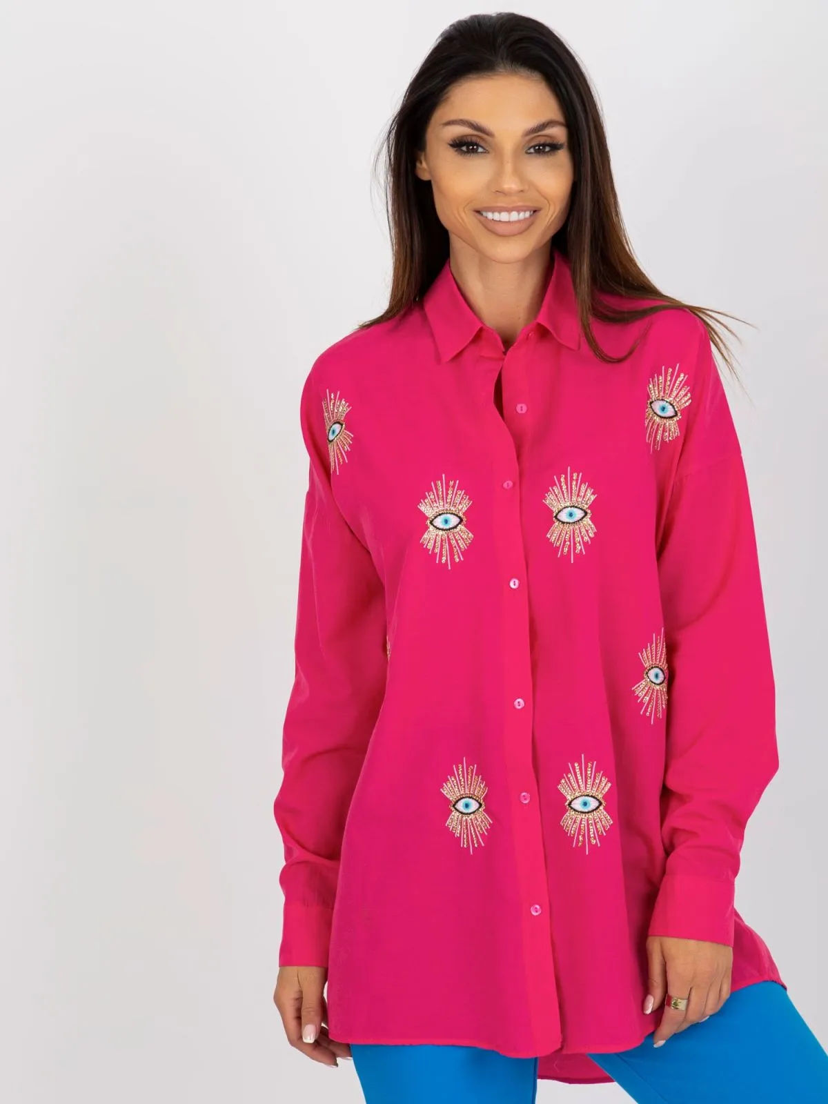 Camasa oversize fucsia cu inchidere cu nasturi.