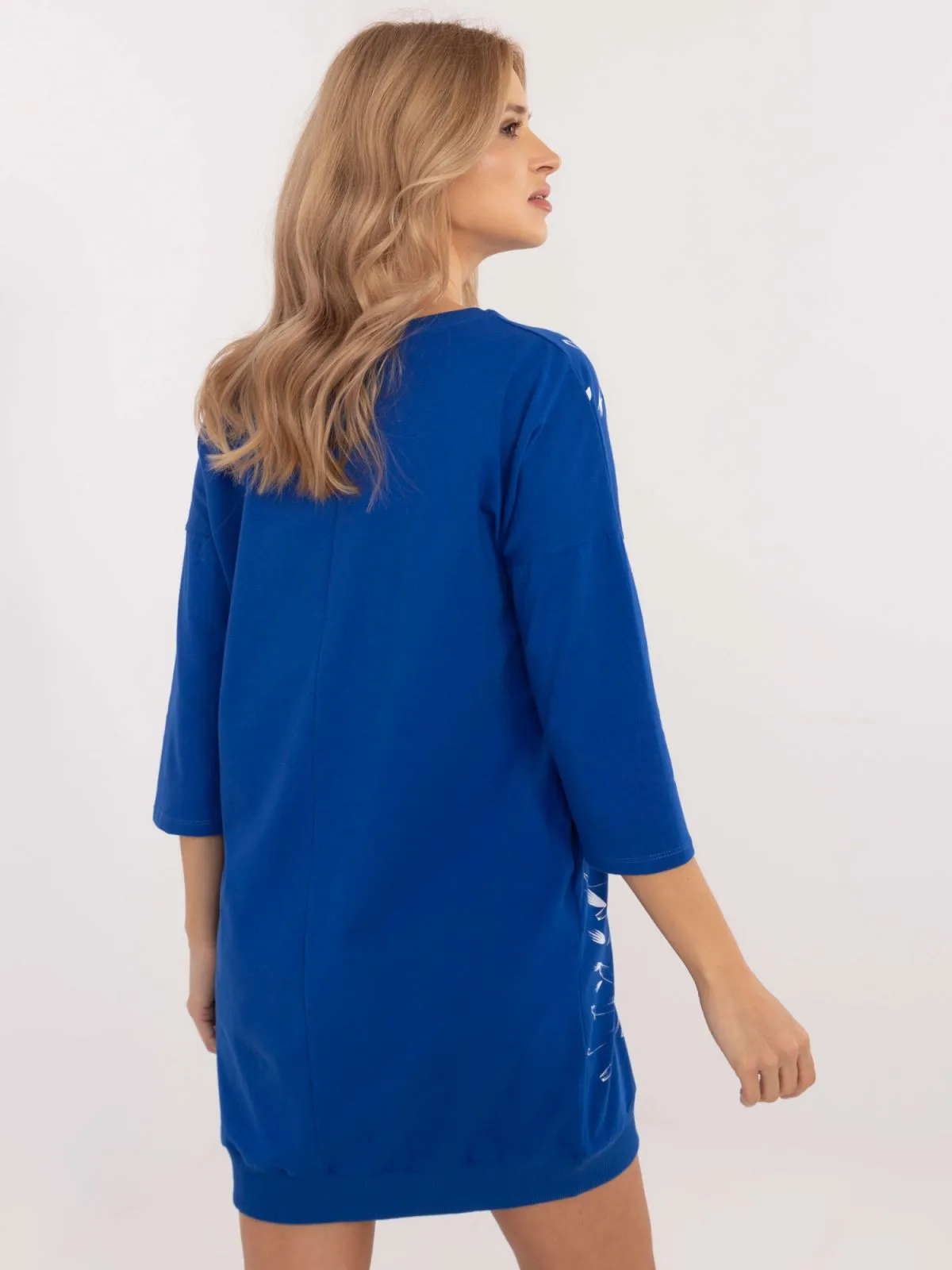 Dimensiunile rochiei in marime unica, masurate plat: latime axila - 58 cm, lungime maneca - 30 cm (de la cusatura), lungime totala - 87 cm.
