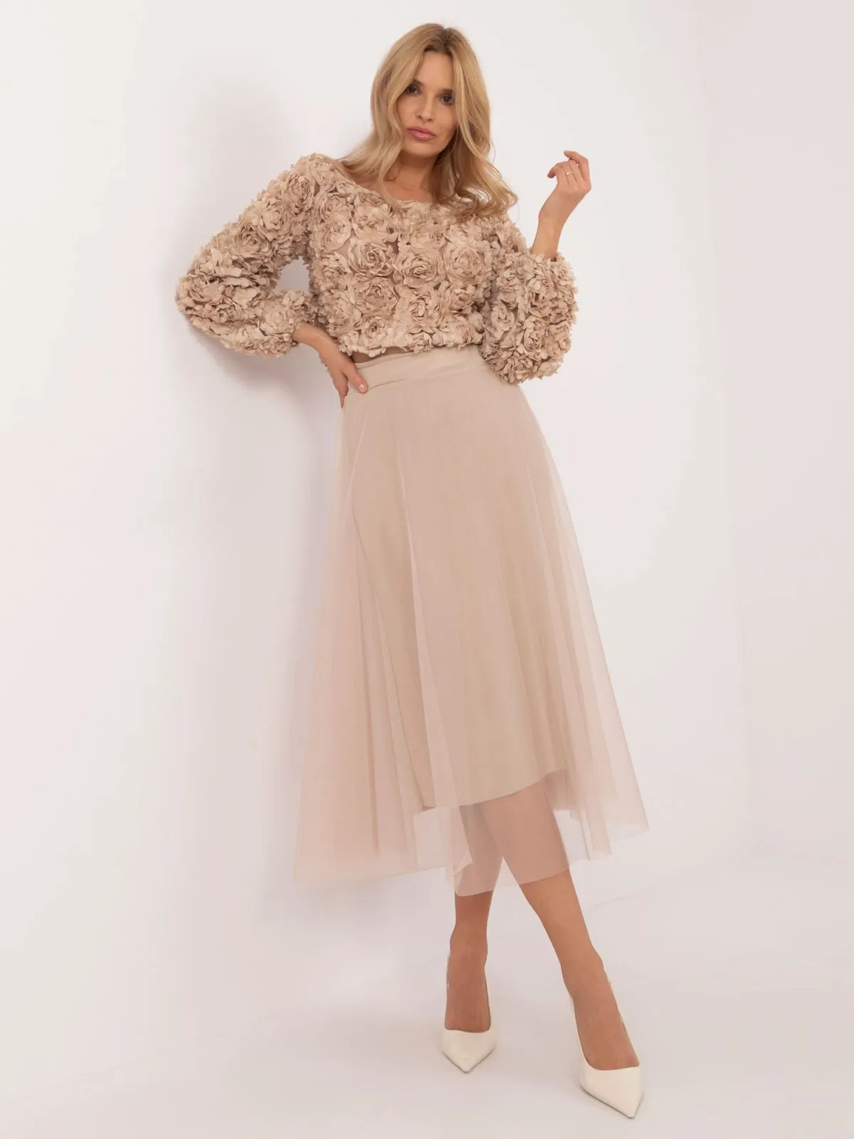 Fusta dama evazata bej