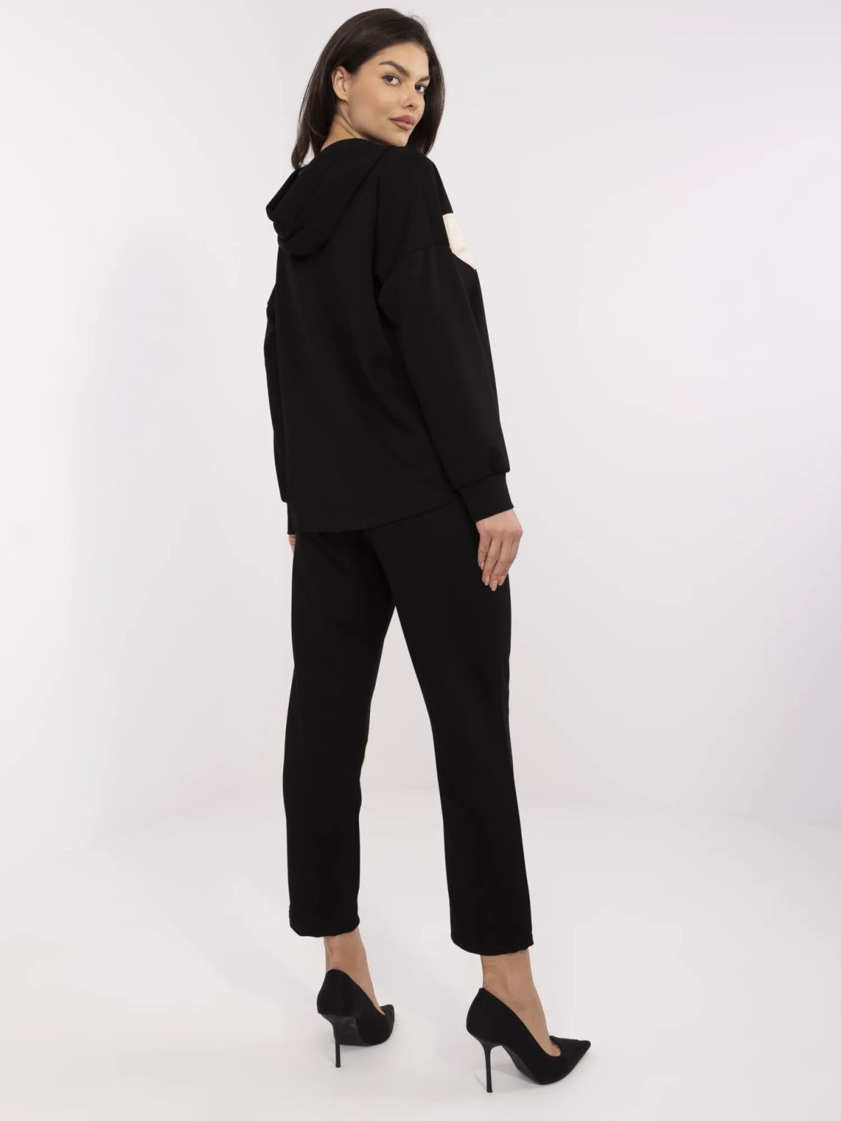 Dimensiunile hanoracului in marime unica, masurate plat: latime axila - 65 cm, lungime maneca - 45 cm (de la cusatura), latime sold - 58 cm, lungime totala - 62 cm (fata), lungime totala - 68 cm (spate).