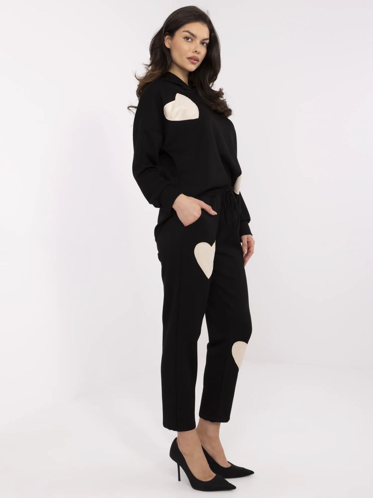 Dimensiuni pantaloni in marime unica latime talie - 32 cm (plata), latime talie - 55 cm (intinsa), inaltime talie - 32 cm, latime sold - 54 cm, lungime totala - 95 cm.