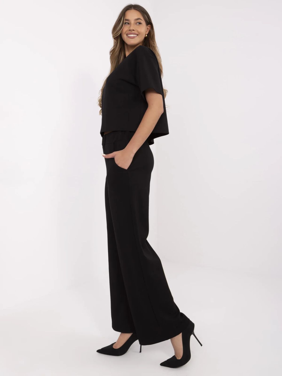 Dimensiunile pantalonilor in marime unica: latime talie - 35 cm (plat), latime talie - 68 cm (dupa intindere), inaltimea taliei - 32 cm, latime sold - 52 cm, lungime totala - 97 cm.
