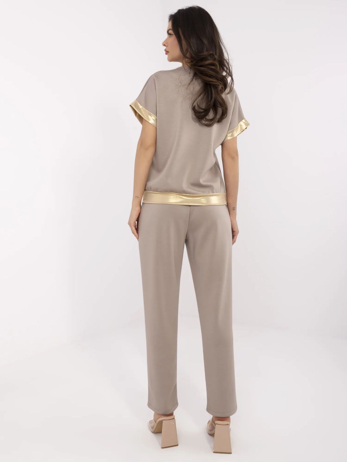 Dimensiuni pantaloni intr-o marime, latime talie - 33 cm (plat), latime talie - 62 cm (dupa intindere), inaltimea taliei - 31 cm, latime sold - 54 cm, lungime totala - 97 cm.