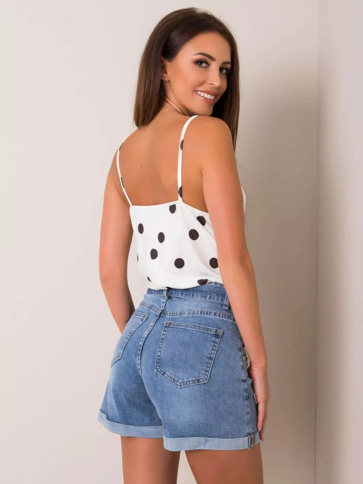 Short din denim albastru cu curea.