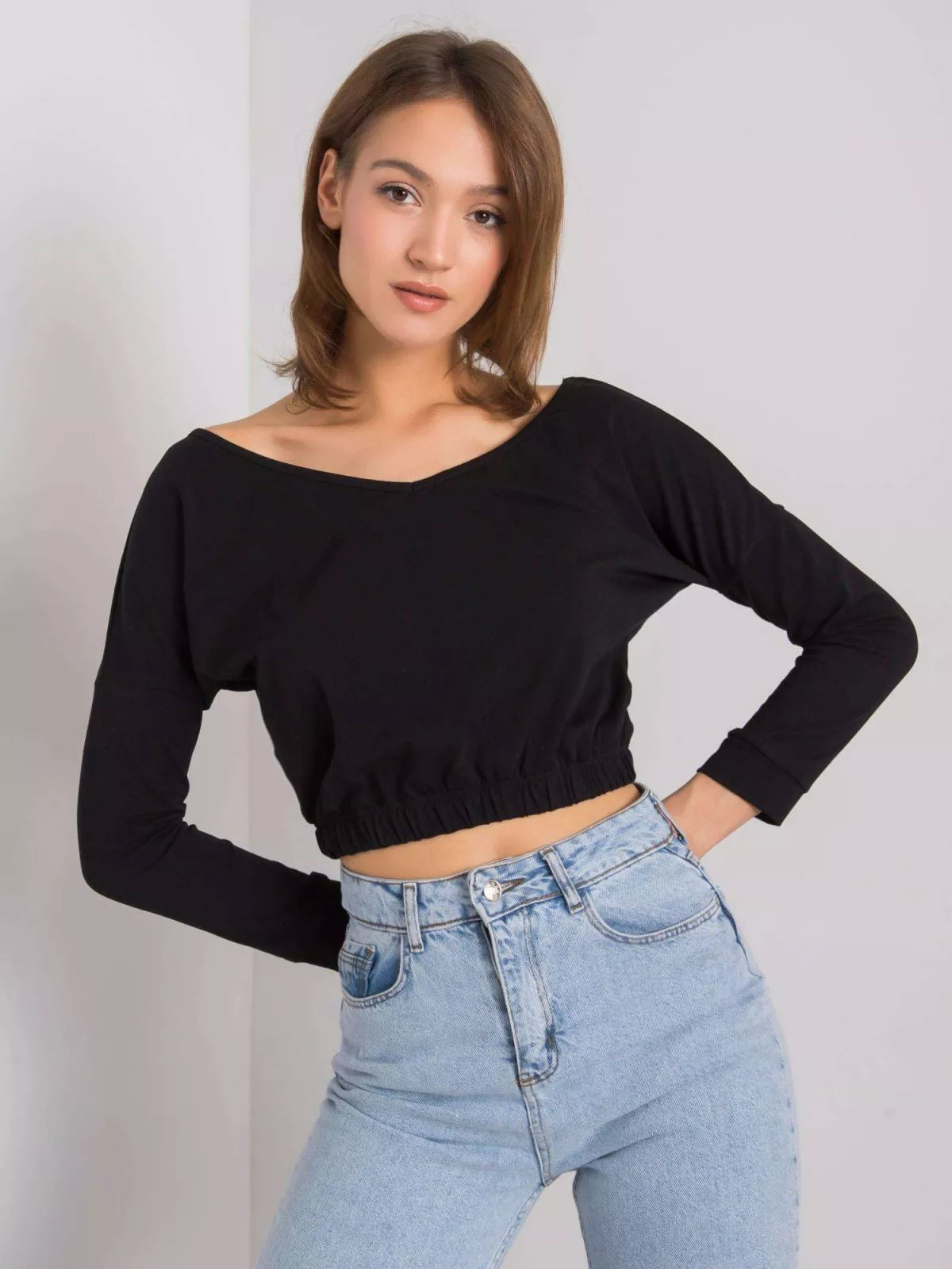 Bluza neagra cu maneci lungi.