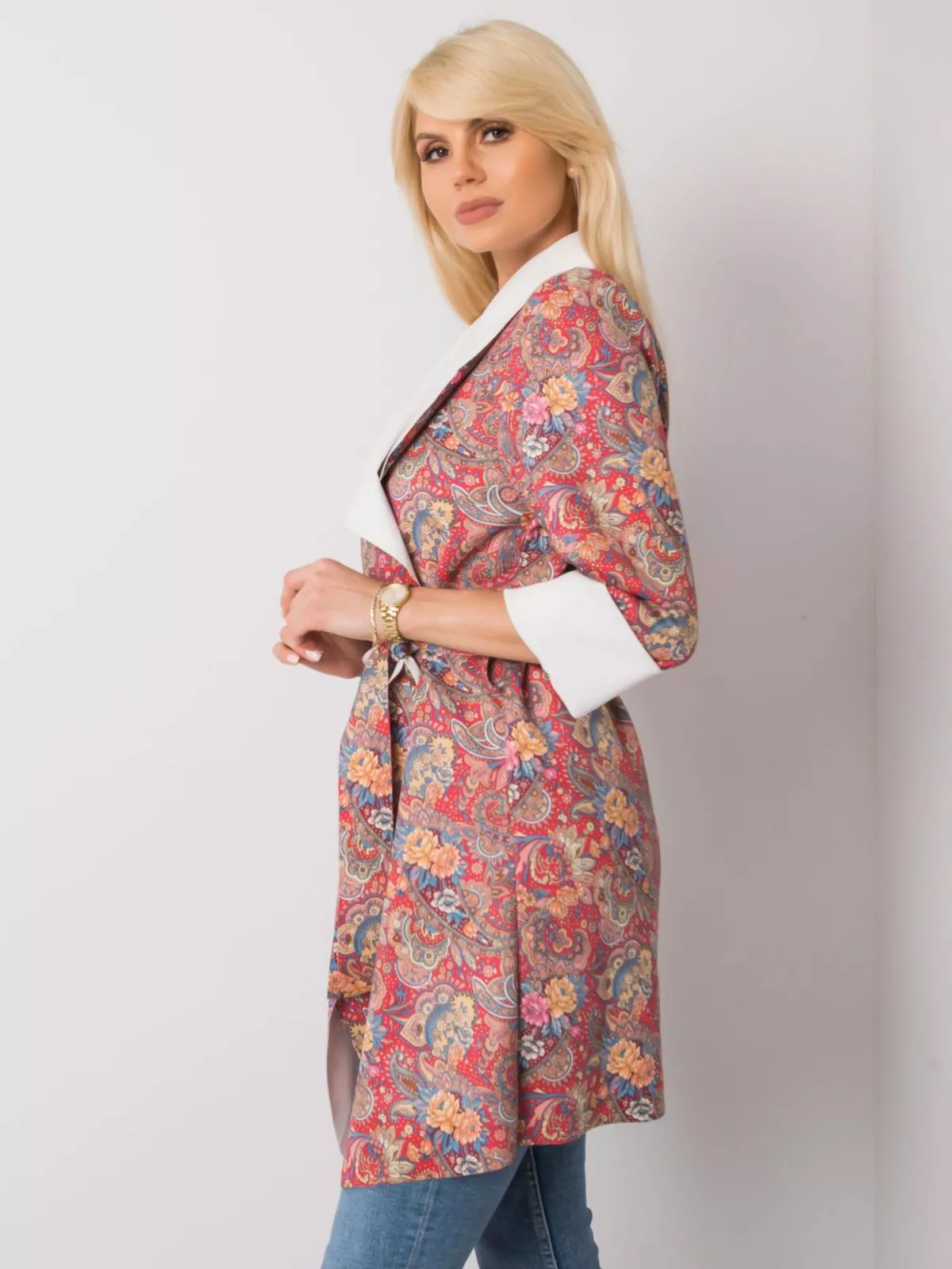Dimensiuni model: inaltime 175 cm, bust 85 cm, talie 63 cm, solduri 95 cm.
