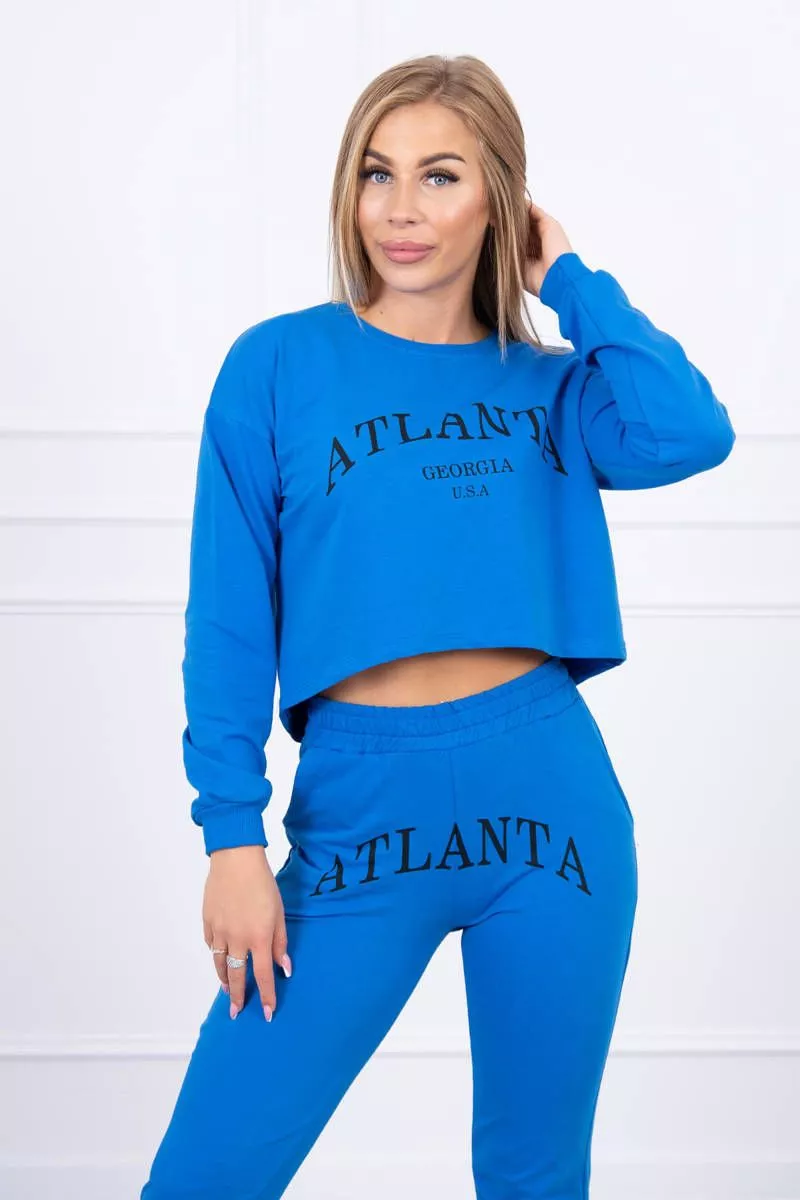 Iti prezentam un set de bluze si pantaloni. Bluza are imprimeu Atlanta. Pantaloni cu buzunare si legare in talie. Setul este realizat din material de inalta calitate. Marimea este universala si va fi potrivita pentru doamnele in marimile S, M sau L.